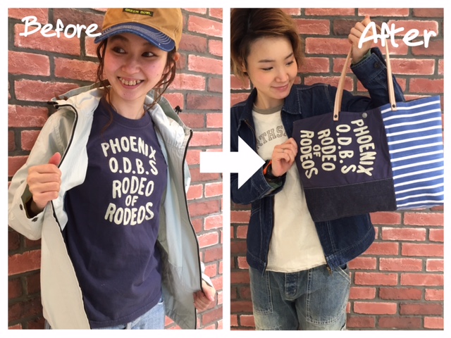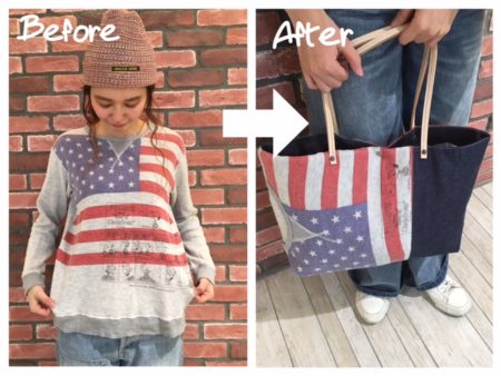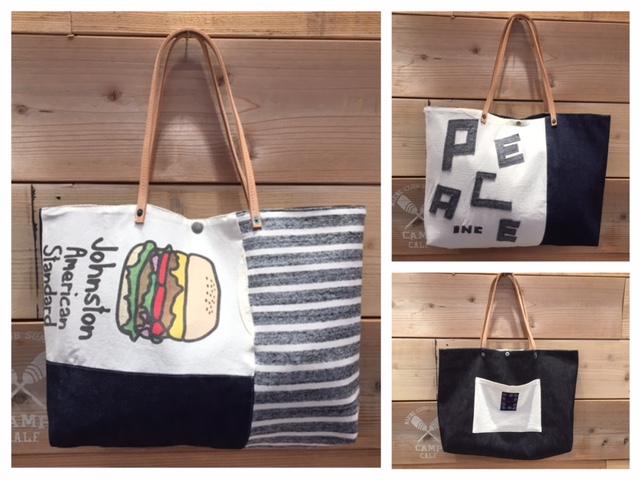 シーチングや、ポケットがリメイクした様な雰囲気がとってもかわいいですよ〜