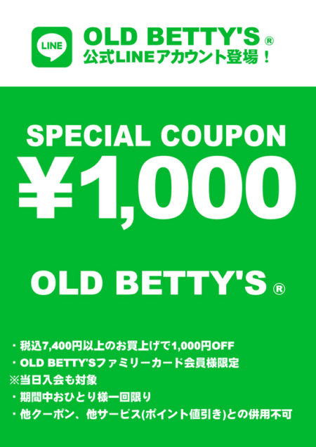 この度OLD BETTY’S公式LINEアカウントを開始致しました~♫☆彡