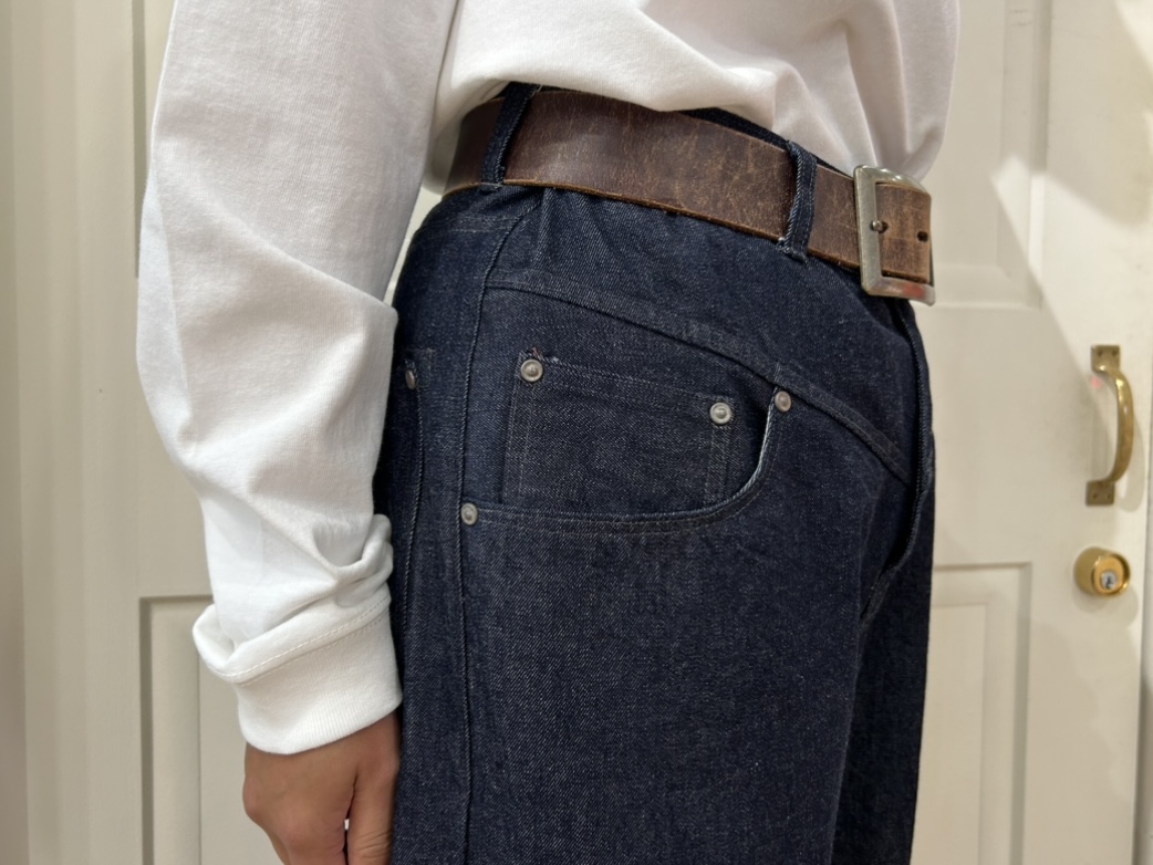 10ozのデニム生地で柔らかく履き心地良いです
