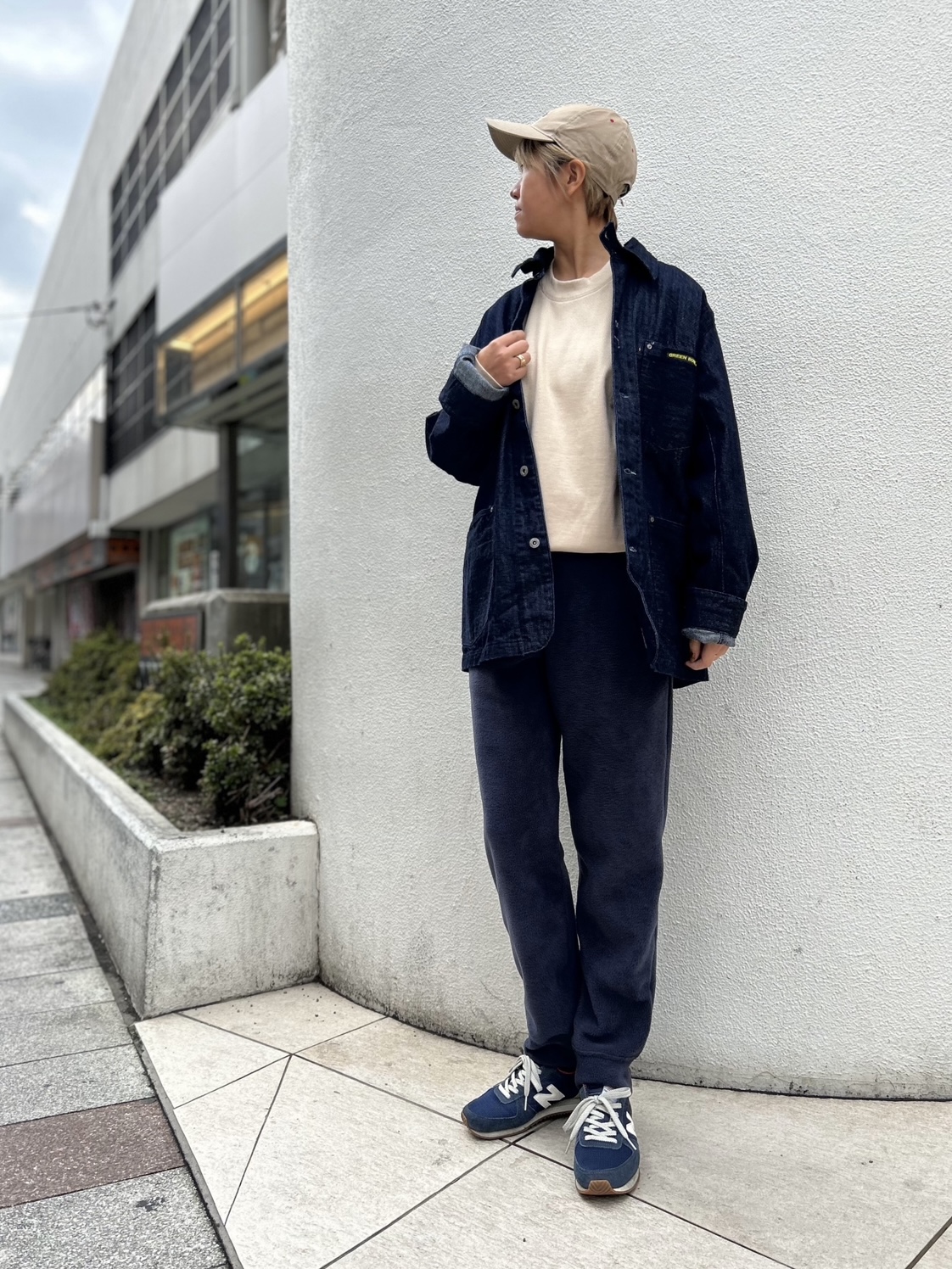 デニム×フリースパンツでメンズライクにまとまりました(^0_0^)