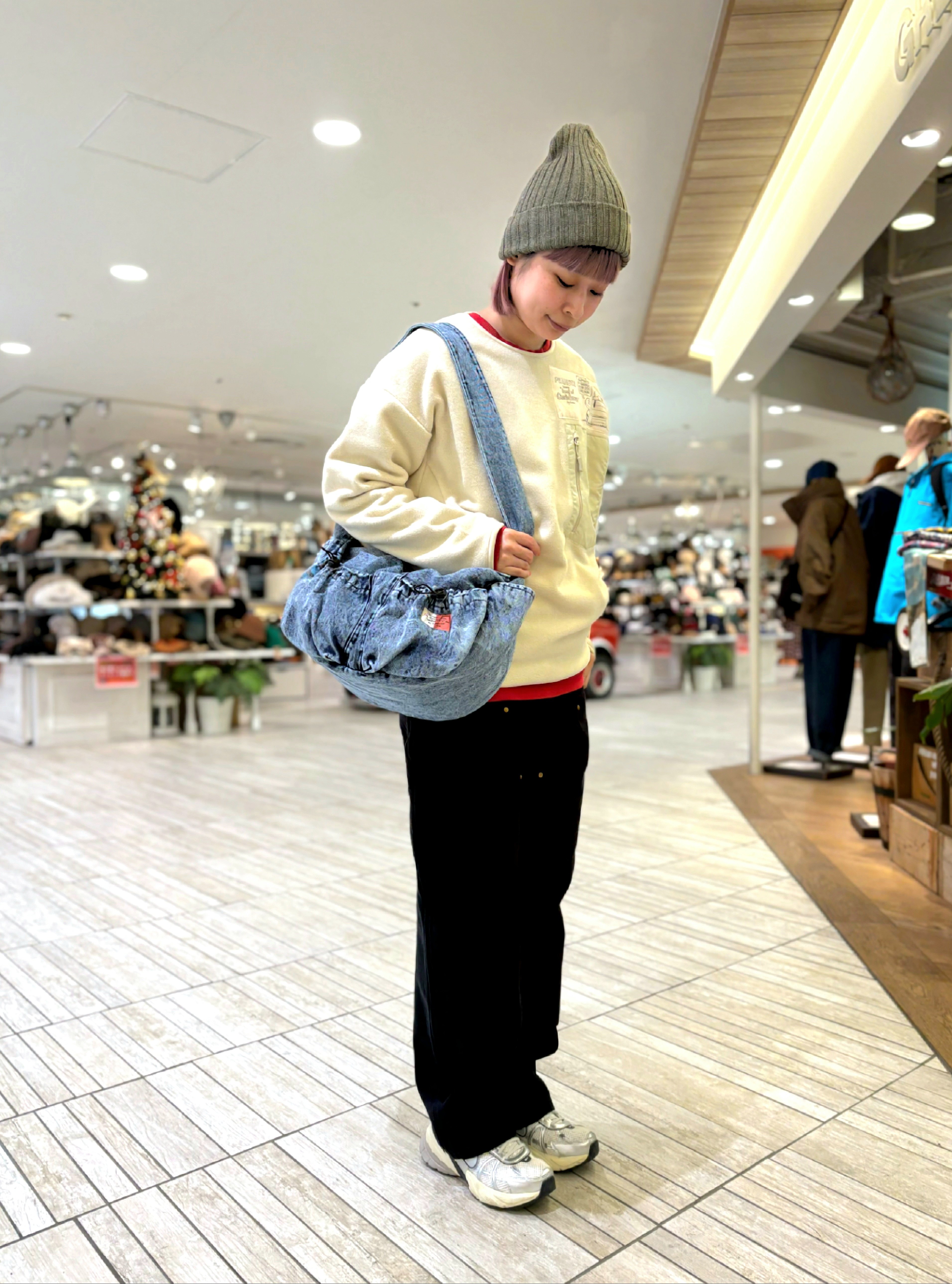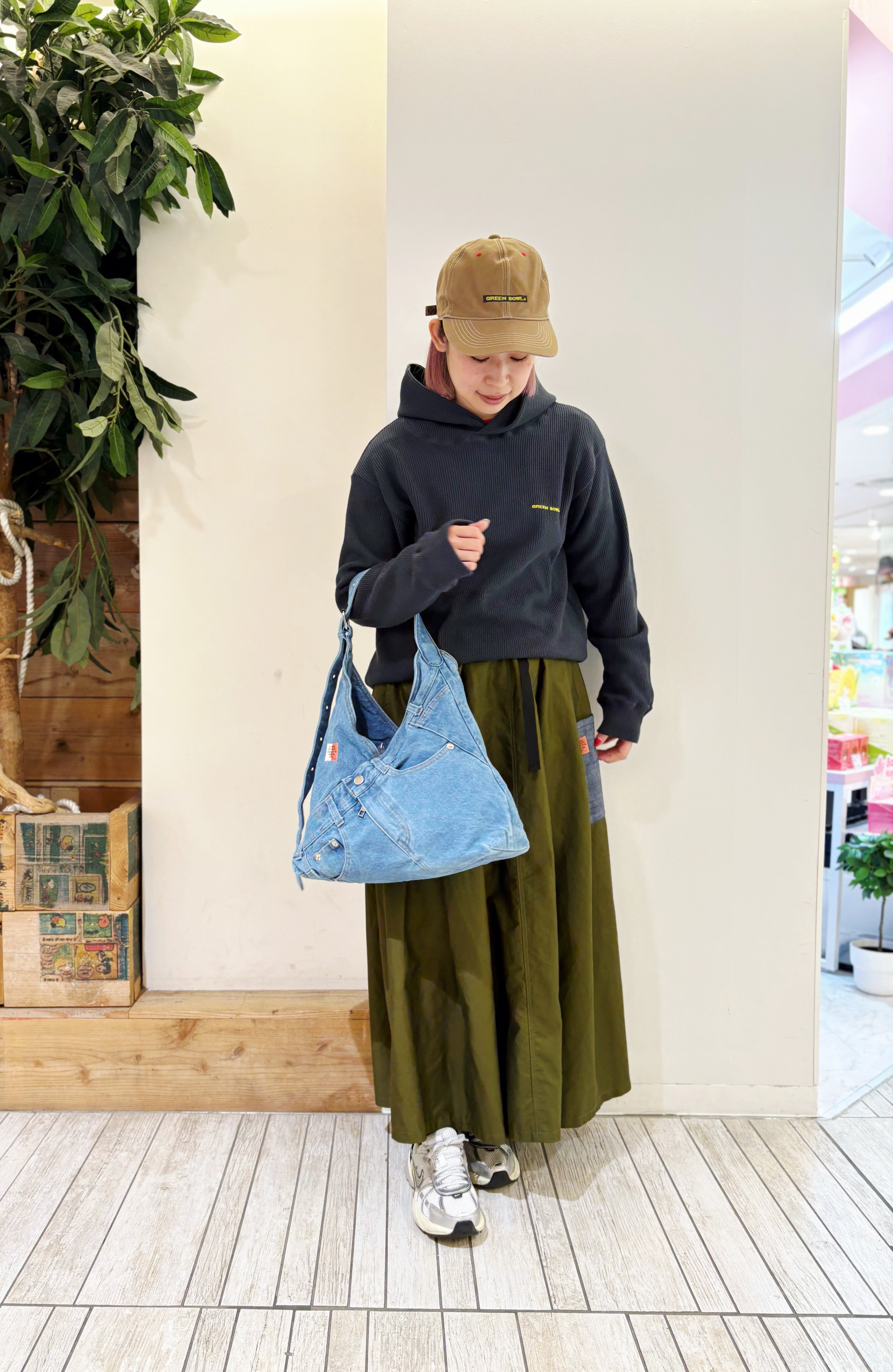柔らかい生地のデニムは履きやすく、靴の上にたまる感じも可愛いです☆