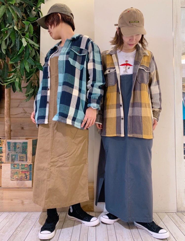おすすめコーデ☆ スタッフおすすめコーデです☆ 新作のジャンパースカートとCPOシャツを合わせてみました(*^_^*) この組み合わせが可愛くてたまたまスタッフ色違いで同じコーデでした(笑) 是非参考にしてみてください* 【GREEN BOWL】Deck Overskirt