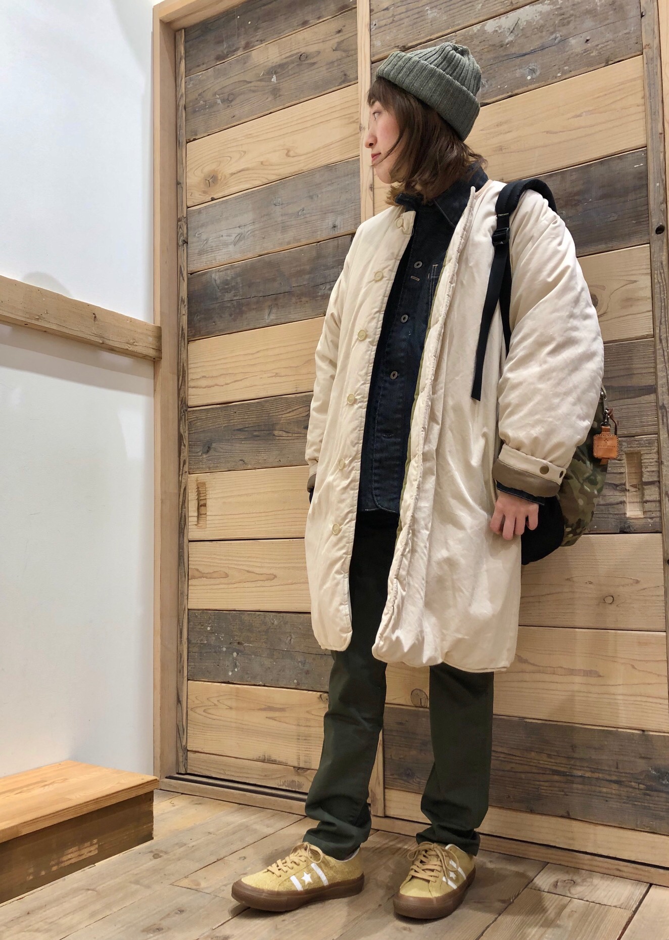 メンズっぽくなりすぎず、アイボリーが柔らかさを出してくれているのがポイントです(^ω^)*