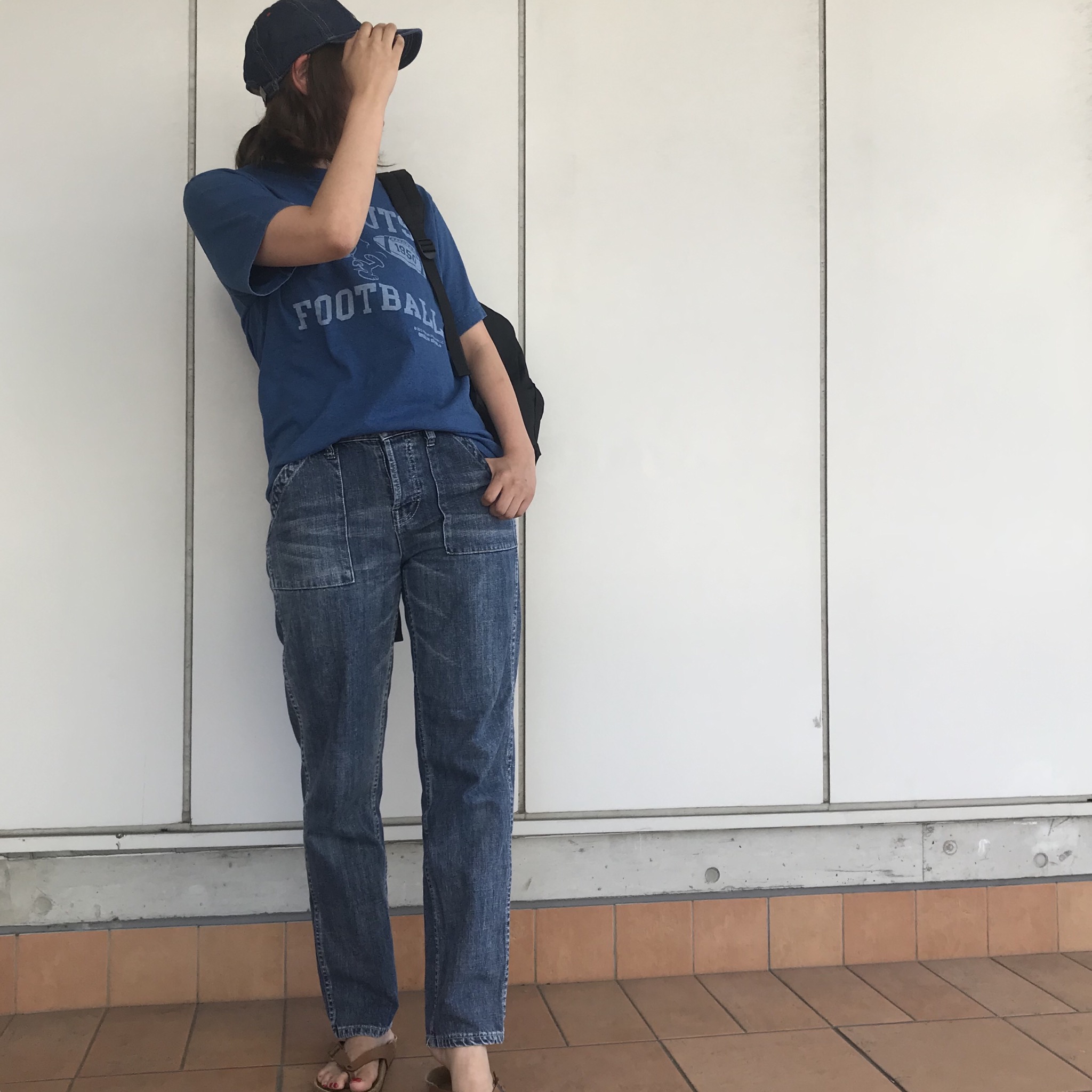 インディゴTシャツにデニムとすごくシンプルですがクールな合わせがオススメです♪♪
