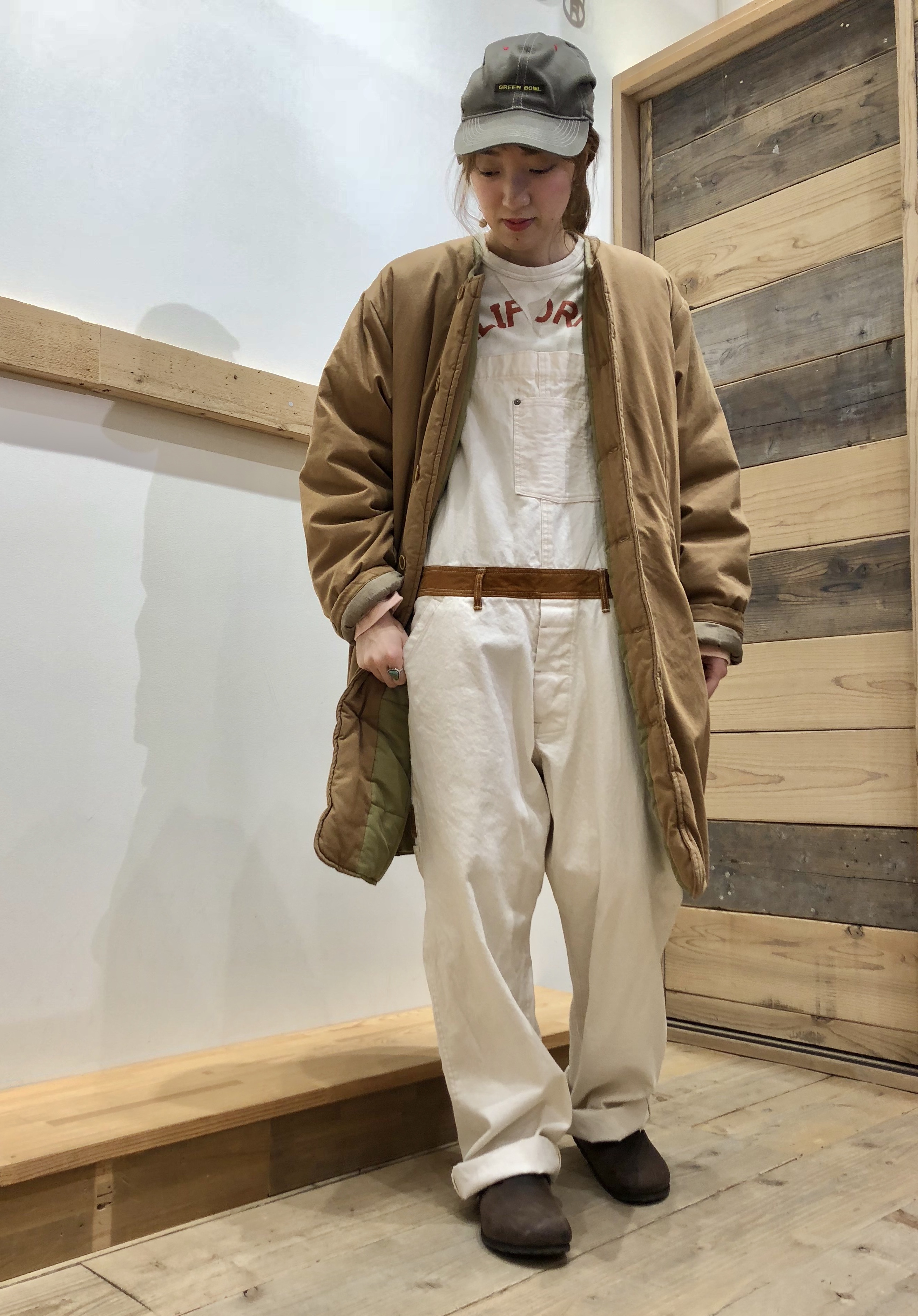 オーバーオールで同系色スタイル* キナリとブラウンを使った同系色スタイルのご紹介です(*’.’*) 今回は久々に同系色で組んでみました☆ キナリのオーバーオールって膨張するのでは…!!と思う方も多いかと思うのですが、実はそんなことないんです! ウエスト部分に切り替えが入っているので逆にスッキリ見せてくれる効果があるんですよ♪ 今回はアウターのカラーと切り替え部分のカラーを合わせているので統一感もバッチリです◎ 是非おすすめのスタイリングなのでご参考にしてみて下さいね☀︎