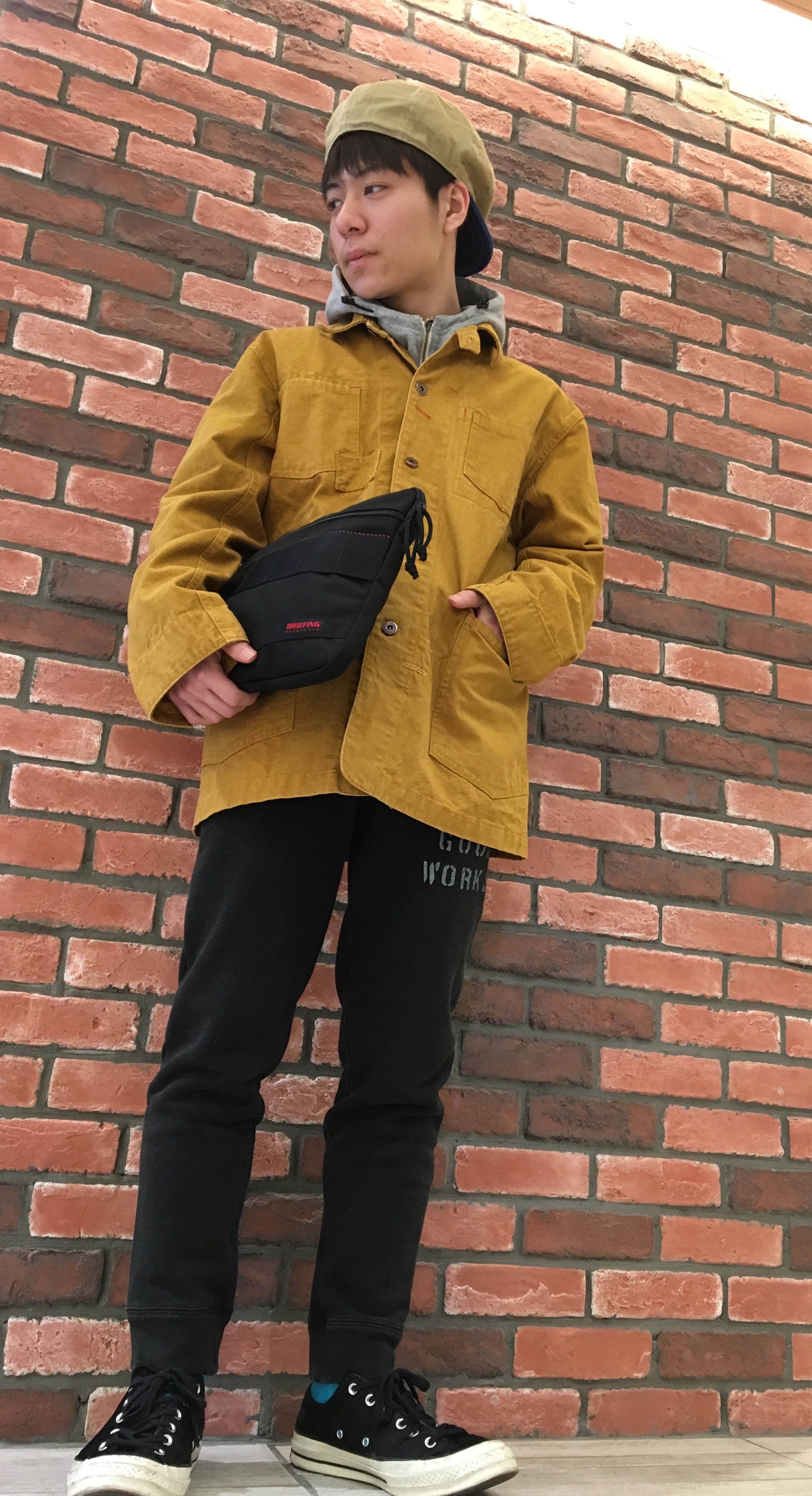 カバーオールのメンズスタイル* 新作のカバーオールのメンズスタイリングです♪ 今回は谷内君に着ていただきました(^^) オーバーサイズなのでメンズが着ても ゆったりとしたサイズ感に着れちゃいます! 上がゆったりなので下のパンツは細身で 合わせることでバランスもとれ、あえて ボタンを全部閉めることでカチッとした かっこよさも出るんですよ◎ マスタードもお似合いですがオレンジも 可愛いと谷内君も悩んでました* 是非皆さんも参考にしてみてください☆
