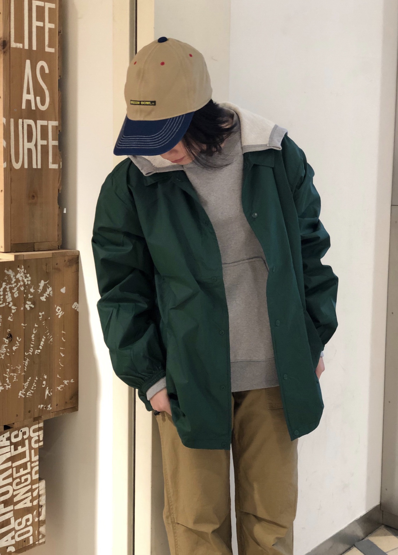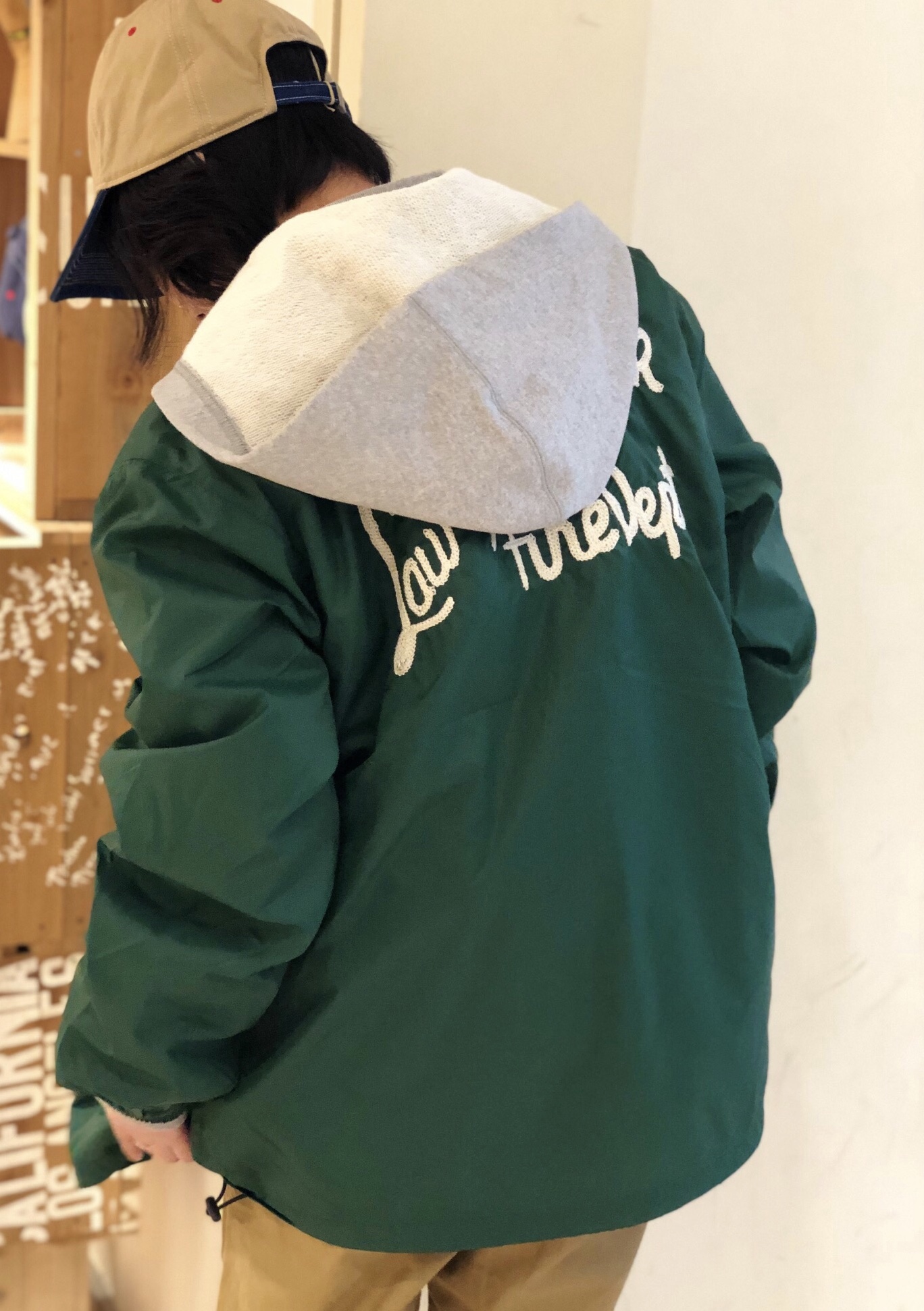 コーチジャケットがおすすめですよ◎ コーチジャケットがおすすめですよ☆★ 今回はグリーンをチョイスしてスタイリングしてみました* 薄手なのでパーカーやトレーナーの上から羽織ってもゴアゴアせず着れるのが嬉しいポイントなんですよね(*’.’*) 後ろに刺繍が入っているのもコーチジャケットでは珍しいんですよね◎ コーチジャケットも再プライスダウンとなっているので是非チェックしてみてくださいね*