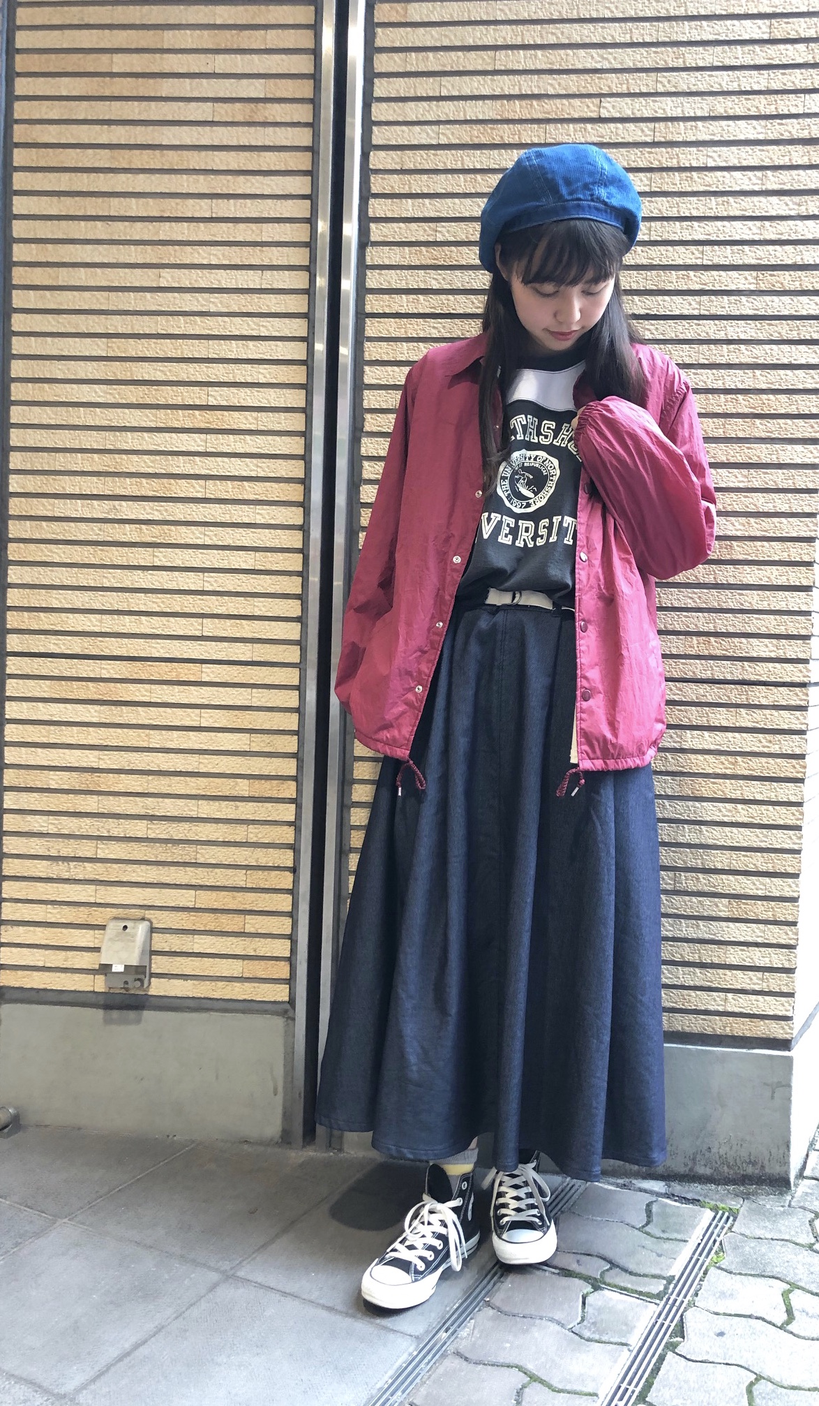 コーチジャケットでガーリーに* コーチジャケットってメンズライクになりがちと思う方が多いのではないでしょうか?? ですがそんなことないんです! スカートとの相性も◎なので合わせると少しメンズライクにはずして着れちゃいます☆ オーバーサイズな雰囲気がまた可愛いですよね(^^) スタッフ人気も抜群です♪♪ 是非おすすめアイテムなのでチェックしてくださいね*