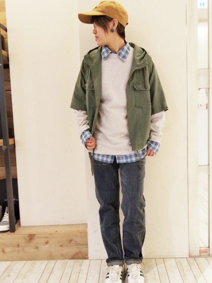 サルベージパーカーコーディネート* サルベージパーカーコーディネート* 最近はシンプルなアイテムが多いのですが、そこにちょっとアクセント! ということでチェックシャツをレイヤードしました★ ちらっと見えるチェックが可愛くさらに淡いカラーなので春らしさもプラス!! ちょっとしたお出かけスタイルにいかがでしょうか??(^^))*