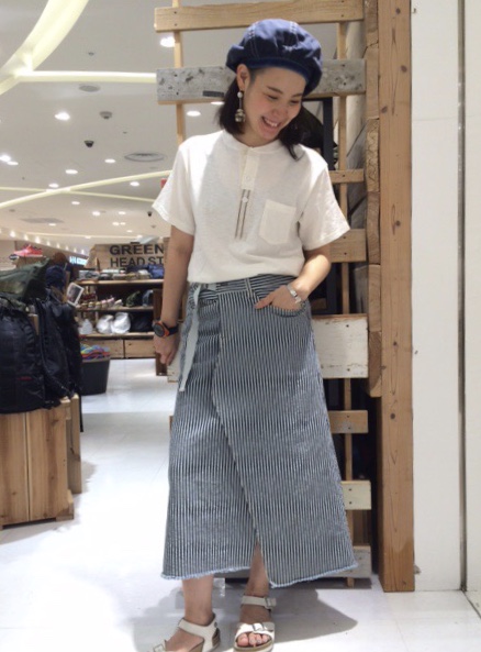 ストライプで夏スタイル☆ 夏らしいスタイリングのご紹介です* 今回はストライプをメインにスタイリングしてみました♪ スカートのストライプとヘンリーのストライプがマッチしているのがポイントなんですよ♡ 色合いも涼しげなのでこれからにオススメのスタイリングなので是非ご参考にしてみてくださいね☆