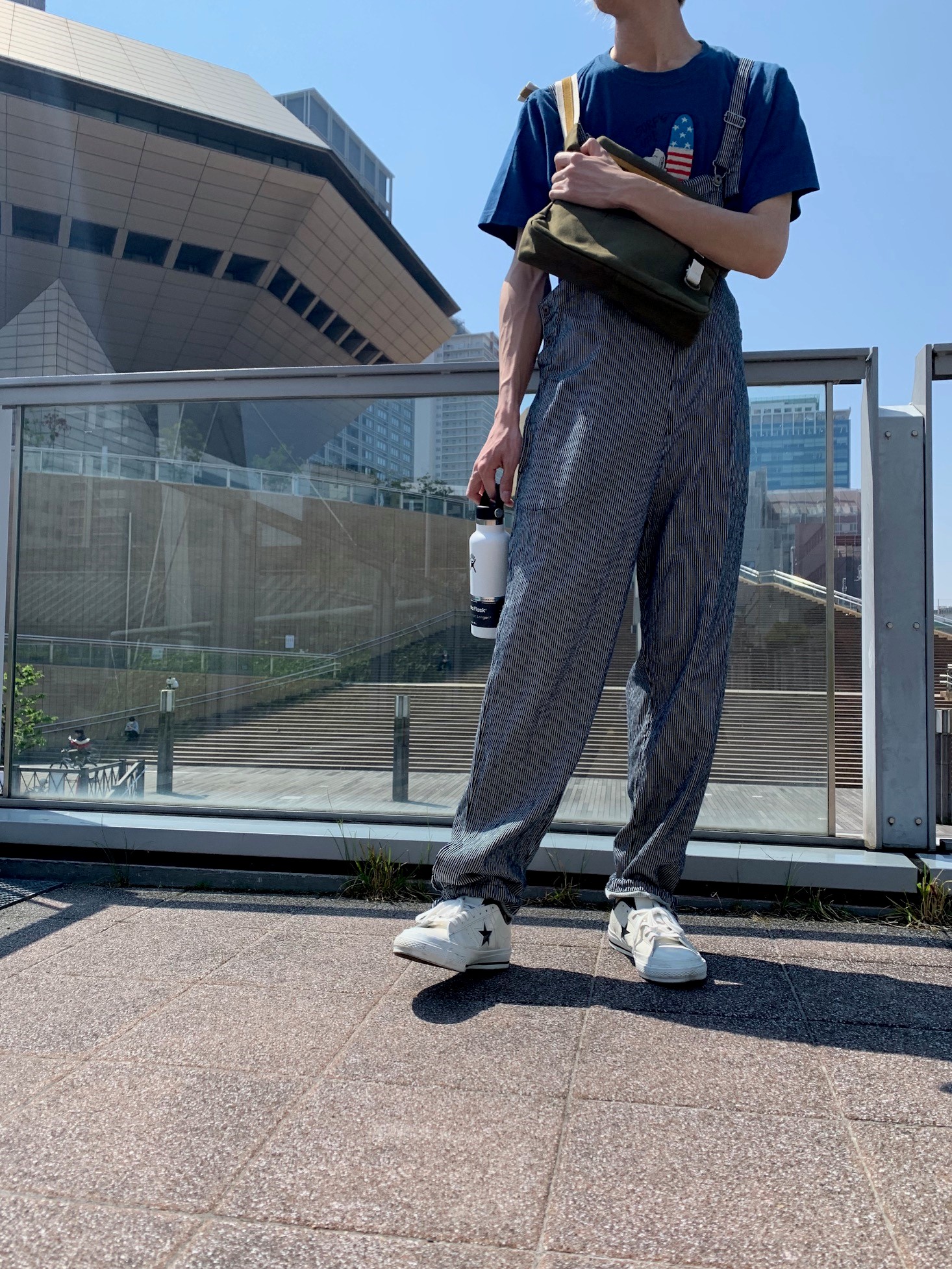 メンズスタッフにスヌーピーのTシャツをオーバーオールと合わせてきてもらいました!!