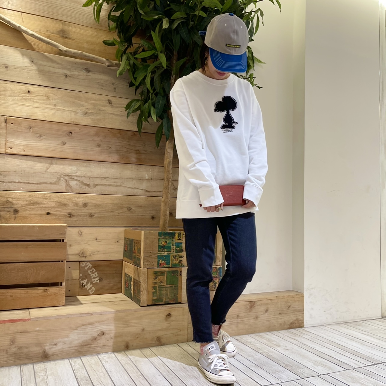 スヌーピースウェットコーデ スヌーピーシルエットスウェットコーディネートです⭐️ センターにスヌーピーがいますがシルエットなのでよく見たらスヌーピー!!となるのがポイント♪ シンプルに黒のパンツと合わせました‼️ 是非参考に!! 【GREEN BOWL】 Baseball Cap 【GREEN BOWL】 Knit Denim Sweat Pants 【SNOOPY】Shadow SNOOPY Embroidery Sweat Shirts