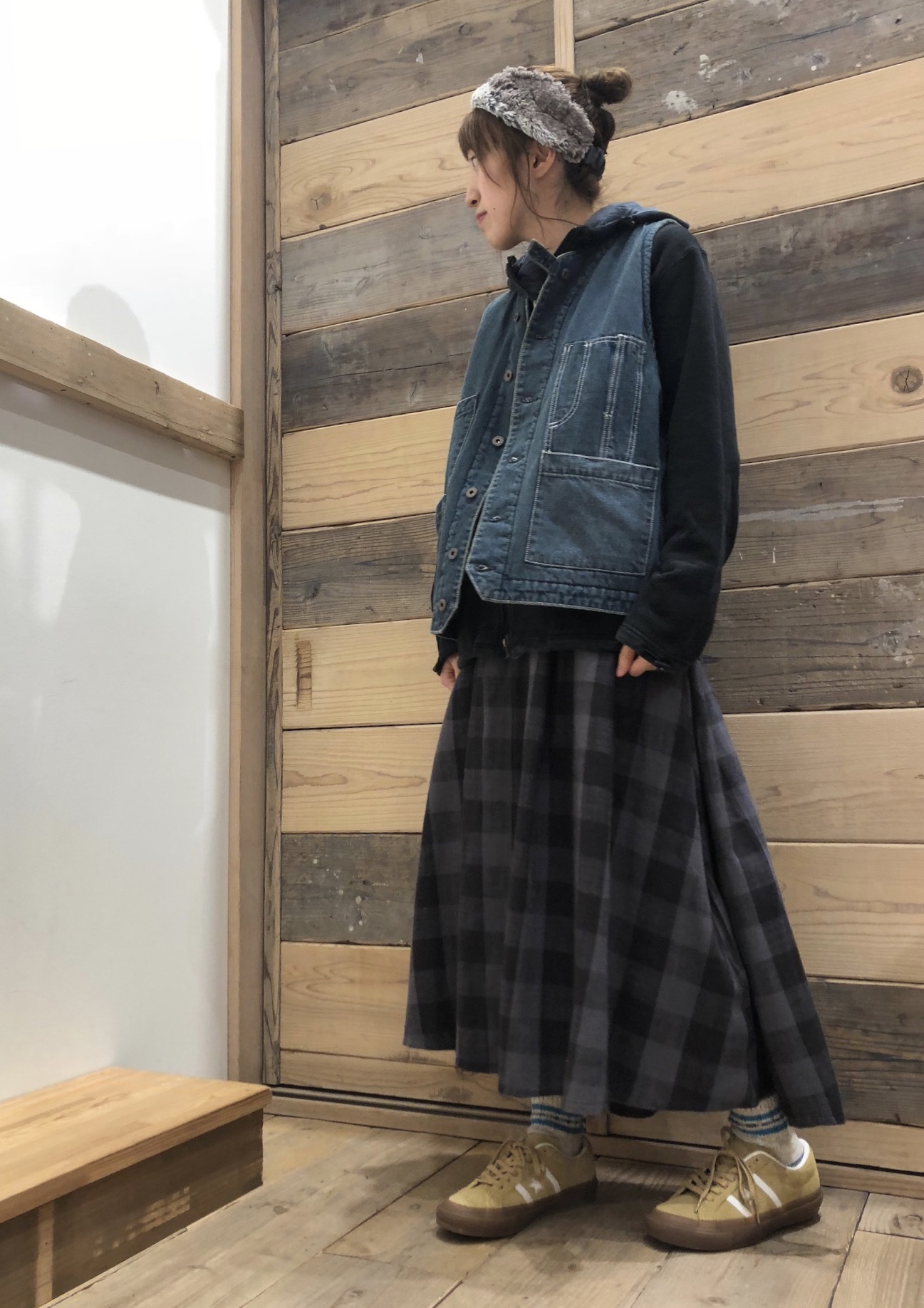 はずしでデニムボアベストを取り入れてキツく見えすぎないのがまたポイントなんですよ( ˘ω˘ )