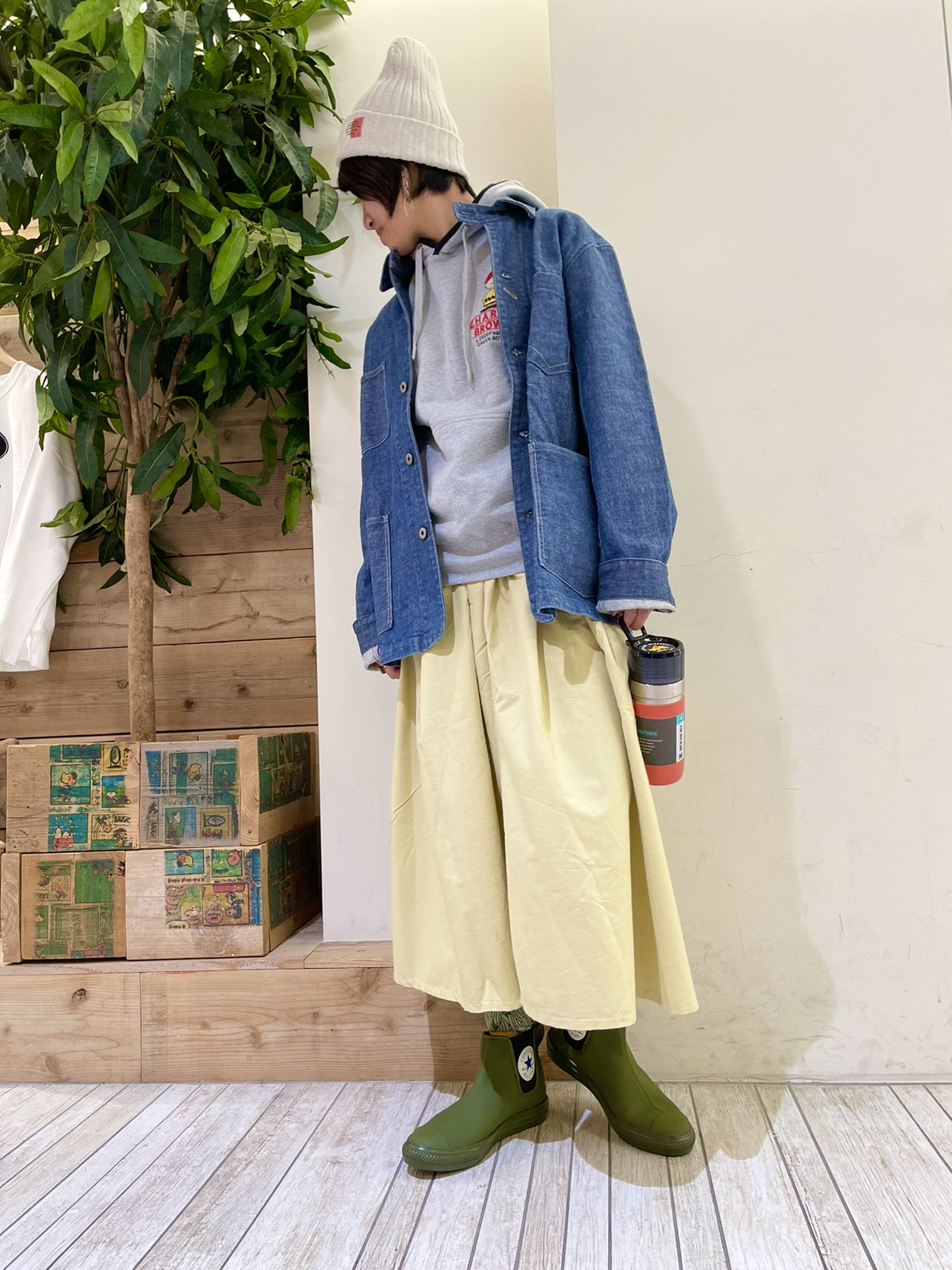 人気のスヌーピーパーカーをカバーオールとスカートで可愛らしくコーディネート( ◠‿◠ )