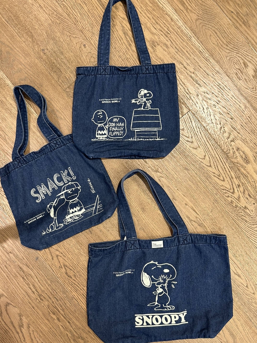デニムトートバッグが人気です* スヌーピーデニムトートバッグが人気です☆ サイズは2種類で、中にポケットも付いていて便利です* ギフトにもおすすめですよ◎ ぜひチェックしてみてください♪ 【SNOOPY】Denim Large Tote Bag 【SNOOPY】Denim Tote Bag