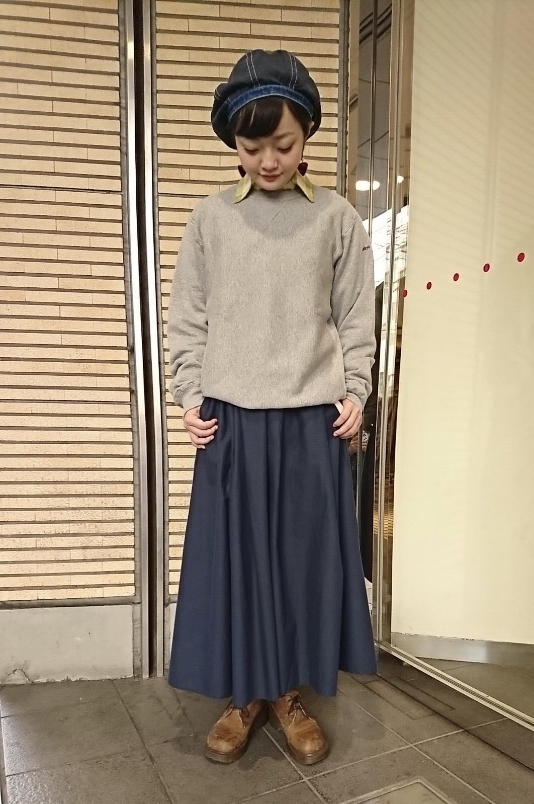 トレーナーをガーリーに* 今回は新作のトレーナーを使ってガーリーにまとめてみました* トレーナーはシンプルなデザインでメンズライクに見えますがボリュームスカートと合わせてあげると女の子っぽく見えて可愛いんです☆ シャツを合わせることでかっちり感も見えてくれます♪ スカートとベレー帽をネイビーをあわせているところもまた統一感が出てくれますよ◎ 是非おすすめのスタイリングなので参考にしてみてください(*’.’*)