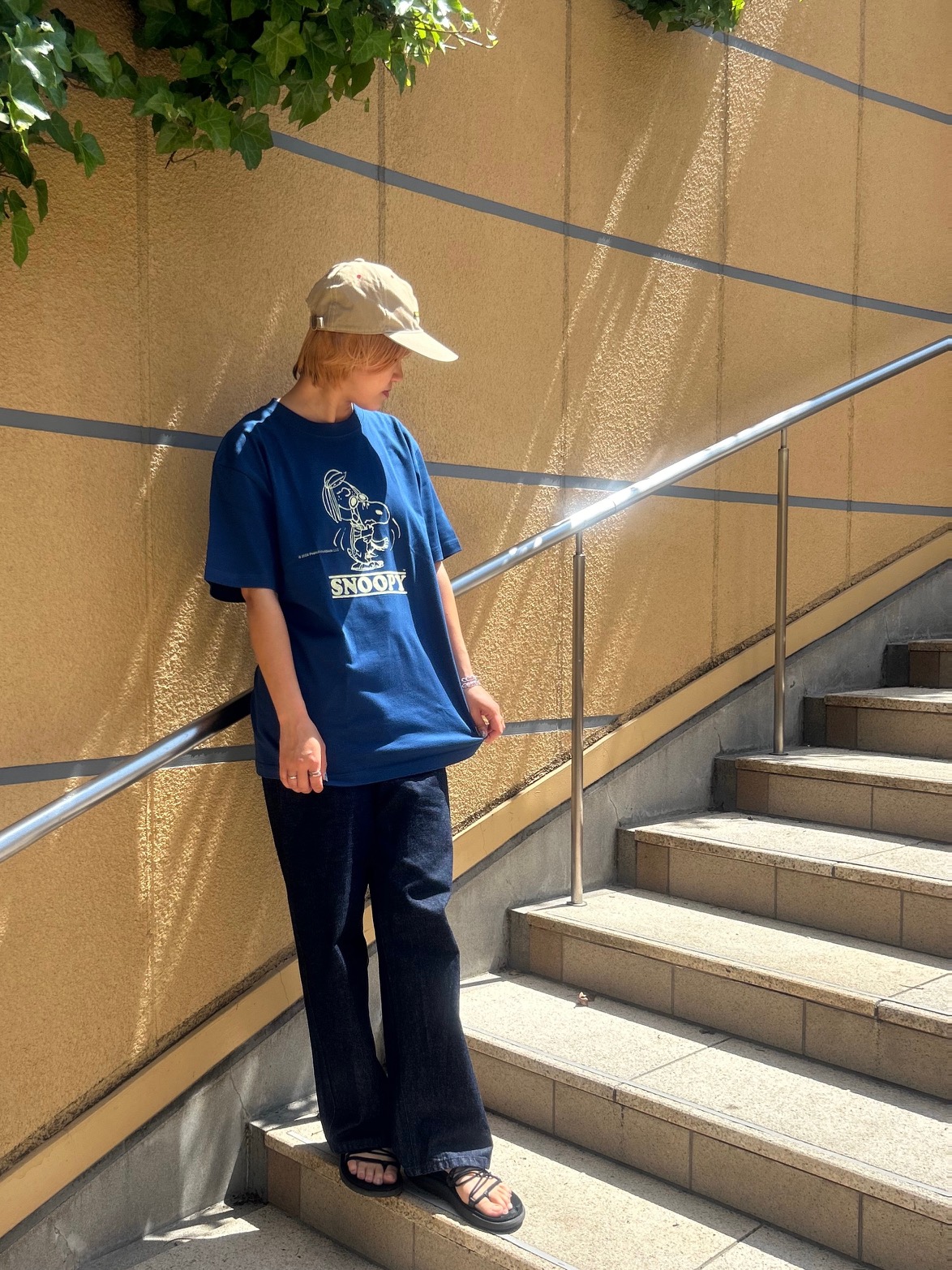 トップスはSNOOPYオリジナルプリントTシャツ!!ペパーミントパティー柄で珍しいです♪