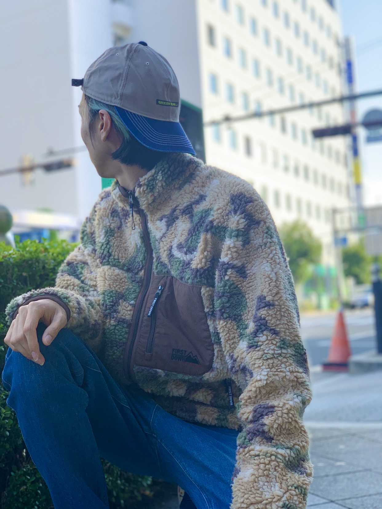 ボアが人気です⭐️ 今、ボアジャケットが人気です‼️ スタッフお気に入りの迷彩のボアジャケットは男女ともに着ていただけますよ⭐️ 寒い時にはこれで完璧です♪ 是非チェックしてみて下さいね! 【FIRST DOWN】タンブリングボアブルゾン 【GREEN BOWL】 Baseball Cap 【GREEN BOWL】 Stretch Denim Tapered Pants