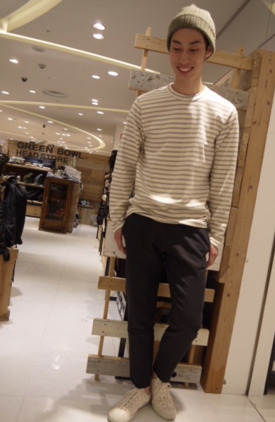 ボーダーで秋っぽく! 少し涼しくなってきましたね! 今回はロンTを使って少し秋っぽくしてみました(^^) シンプルなスタイリングですが足元とTシャツの色を合わせているのがポイントなんですよ! ワッチキャップのカーキもアクセントになっています* これからのシーズン使えるアイテムなので是非チェックしてみてくださいね☆