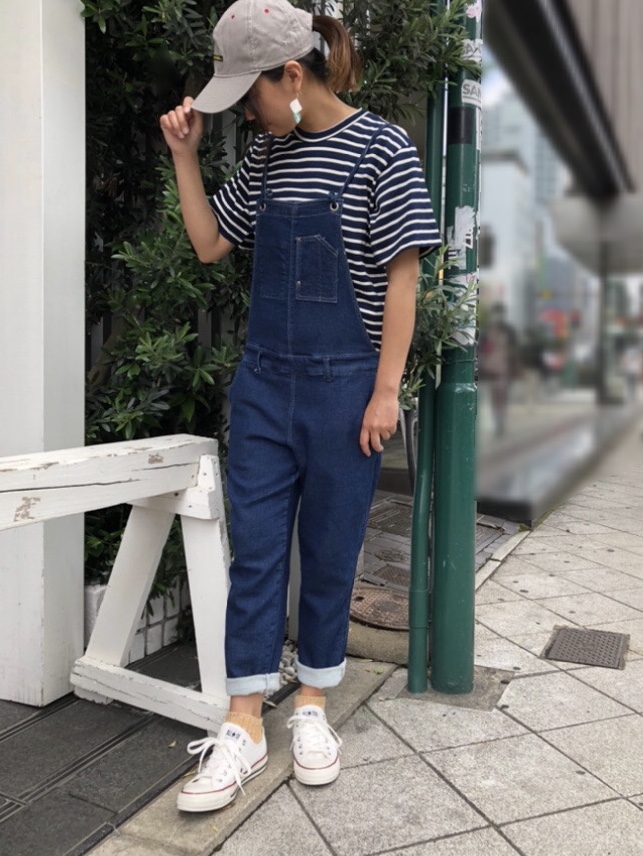 ネイビーボーダーとサロペットの色の統一感がいいですね!