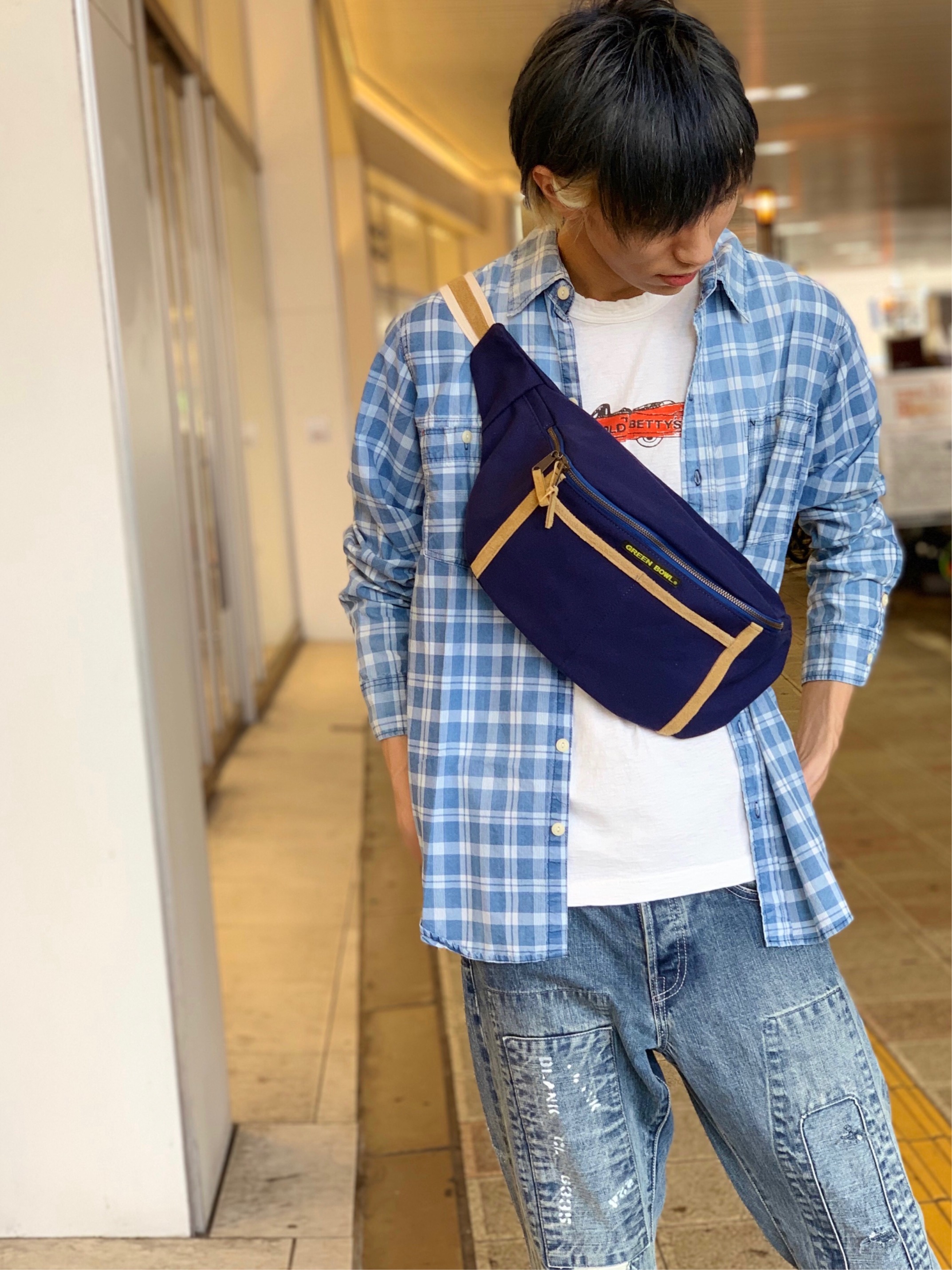 メンズコーディネート メンズコーディネート* 爽やかシャツコーディネート☆ さりげなくのぞいてるのはキャデラック♪♪ アクセントになって可愛いですよね♪♪ シャツとパンツはブルーに、インナーを白にすることで爽やかさUPです^^! 是非コーディネートの参考にしてみて下さいね♪♪