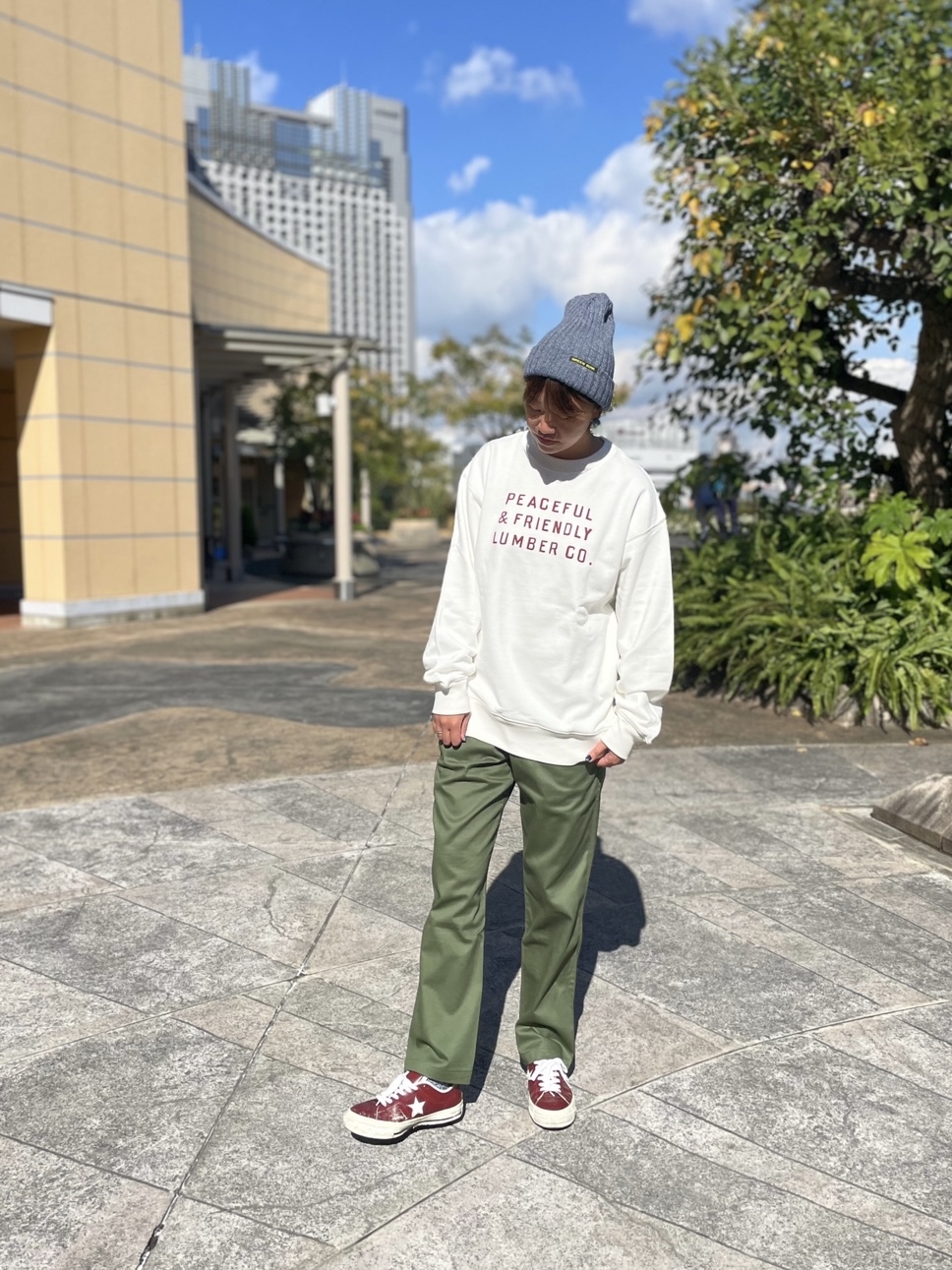 トップスは、ヘビーウエイトの白のトレーナー!!少し厚手の生地なので便利♪♪