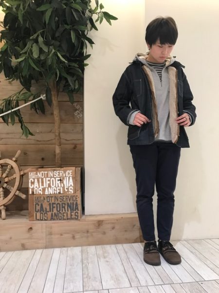 メンズライクコーデ♫ なんば店 冷水さんの着こなしが可愛かったのでパシャリ★ 女の子らしいフェイスとは違って、好きなスタイルは メンズライクなコーディネートのようです(*^_^*)! そうです!全身GREEN BOWLでキマッています★(笑) 重ね着が上手で最近入荷してきたボアベストをインナーにして 暖かさをプラス~(*^^)v 全身見た感じはシンプルですが、冷水さんらしいかっこいいスタイルですね♡♡ 最後に全身で♫* 是非、コーディネートの参考にしてみてくださいね**