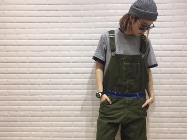 夏場ラクチンなオーバーオールとTシャツや小物のカラーリングでメンズライクな雰囲気に♪♪