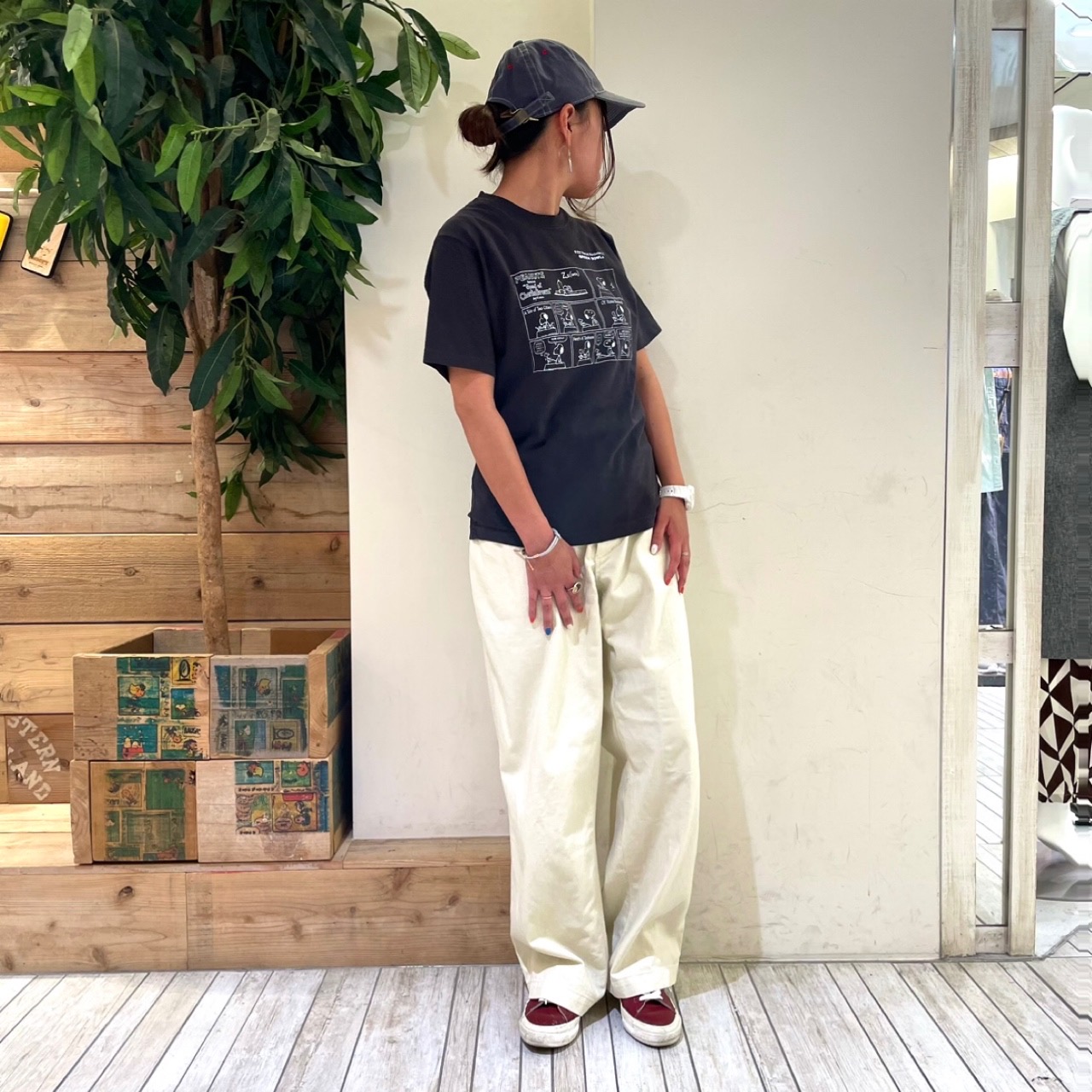 モノトーンコーデ☆ シンプルモノトーンコーデにしてみました(*^_^*) ワイドパンツなのでトップスはコンパクトにSサイズのTシャツでスッキリと☆ トップスをコンパクトなサイズにすることで少しキレイめな雰囲気になります♪ 是非参考にしてみてください** 【GREEN BOWL】Work Pants With Suspender 【SNOOPY】Vintage-like T-shirts