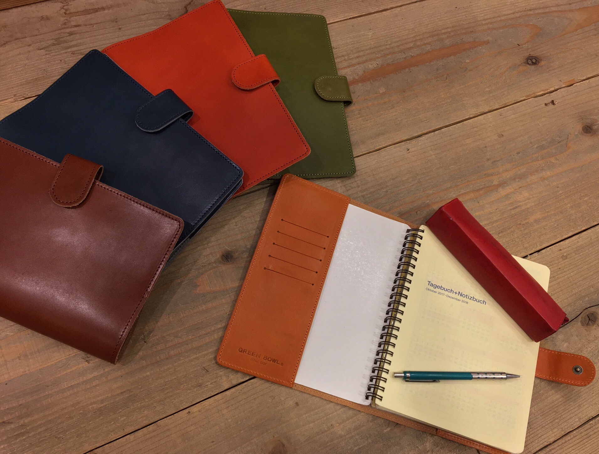 レザーアイテムから新しく仲間入り* レザーアイテムから新作入荷致しました! 今回は手帳ケースです* A5サイズのノートがすっぽり入りました♪ 中には付箋などを収納するポケットもあり とても便利な仕様となっております☆ カラー展開も5色で目移りしてしまいますね…! レザーなので長く使えるため、プレゼントにも おすすめなので是非チェックしてみてください◎