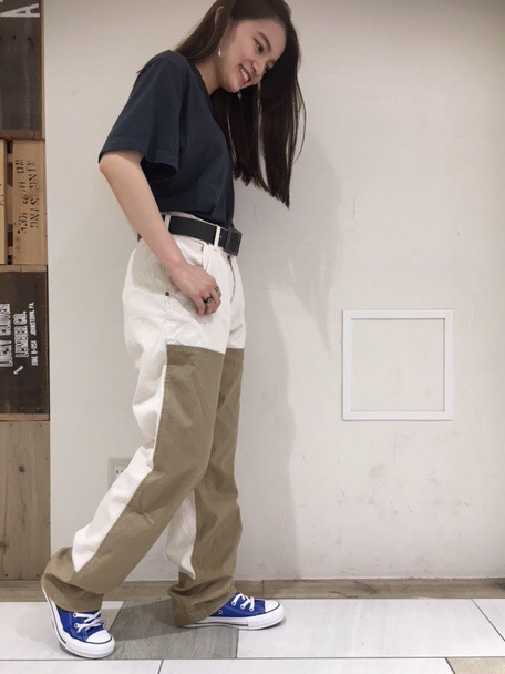 新作のパンツに無地のTシャツS.ブラックを合わせてクールなスタイルに**