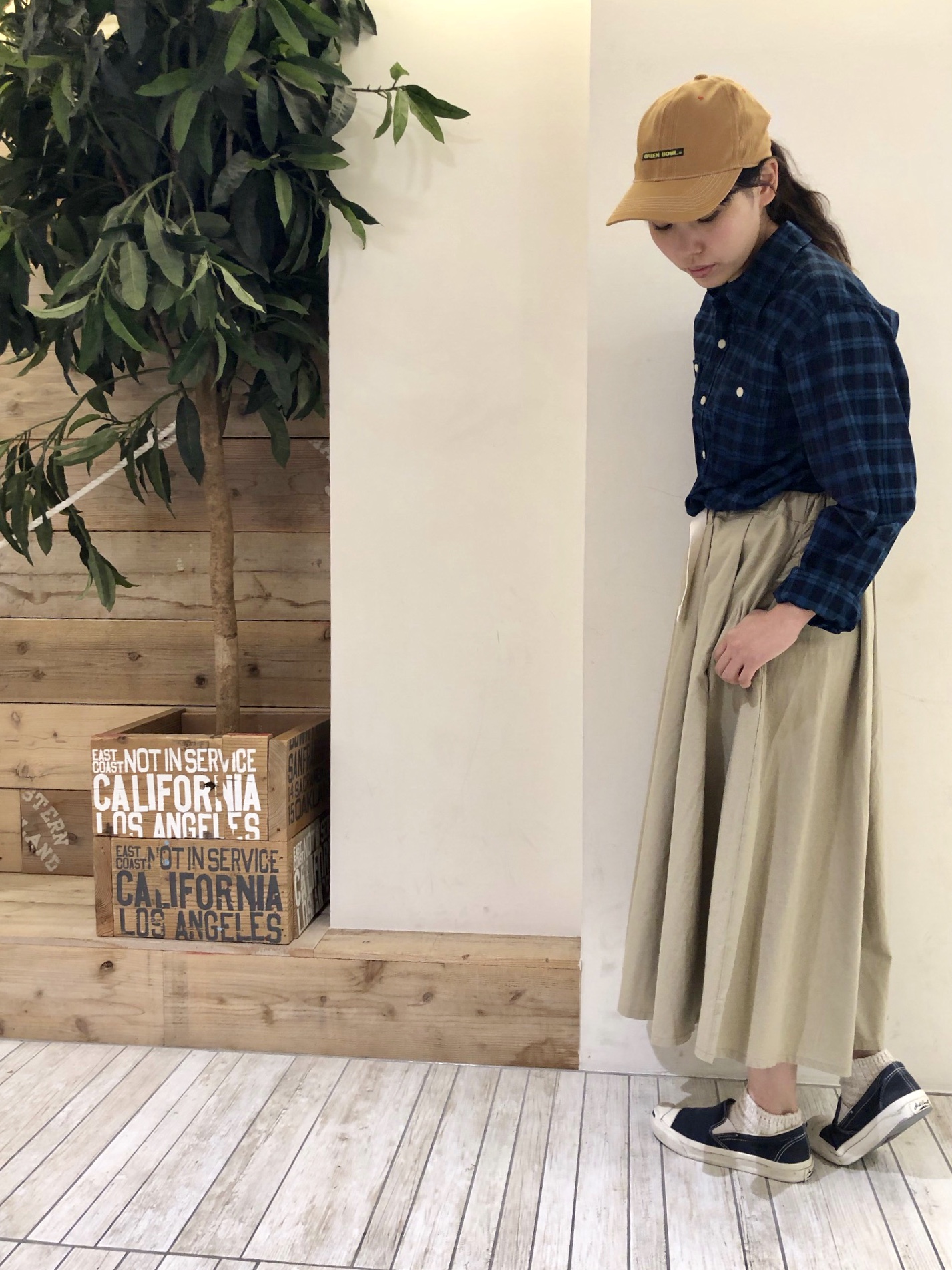 人気のスカートでガーリーに* まだまだボリュームスカートは人気ですよ(^^) 今回はチェックシャツと合わせて少しガーリーな雰囲気のご紹介です♪ スカートとキャップがブラウン、ベージュ系の色味にすることで秋っぽさも倍増ですね!! ボリュームスカートもタックで仕上がっているので広がりすぎず綺麗なラインで着れるのがポイントなんですよ◎ 是非参考にしてみてくださいね*