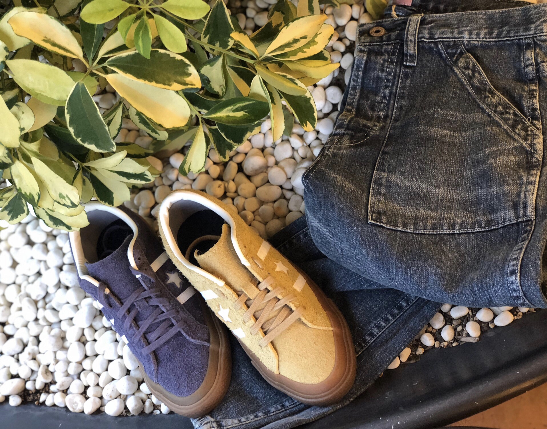 スター&バーズロゴの形状やサイズ、少しえぐるようなタンのパターン、履き口のカッティング、ステッチの入れ方等、細かなパターンやディテールにこだわり、クラシックな外観を追求されておりテープをガムカラ―にアレンジすることでクラシックな雰囲気を残しながら新鮮な印象に仕上げた一足なんですよ!