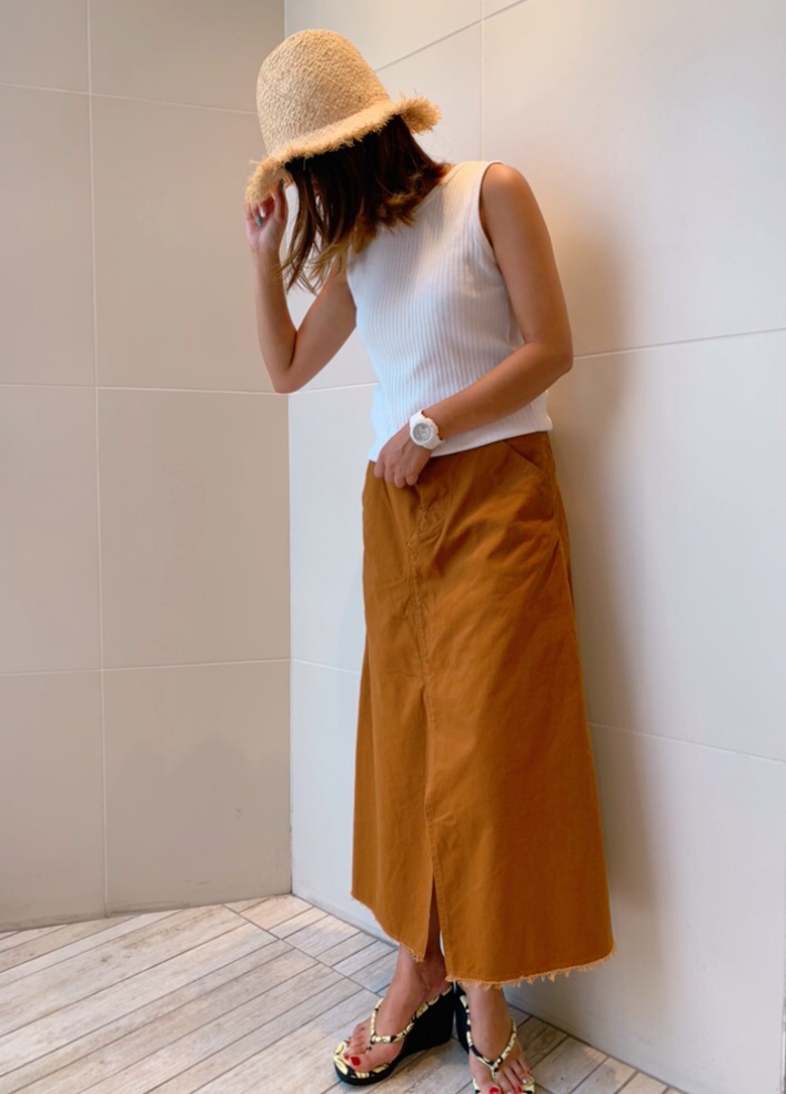 夏本番ですね🌴 今日から8月! ようやく梅雨明けて夏本番ですね☆ 夏大好きなスタッフの夏コーデです* 濃いカラーのスカートですが、白のトップスと合わせることで爽やかに(*^_^*) 是非参考にしてみてください♪♪ 【Born】Broad Rib Tank Top 【OLD BETTY’S】 Duck Painter Remake Skirt 【FLOJOS】611FRNGIPANI