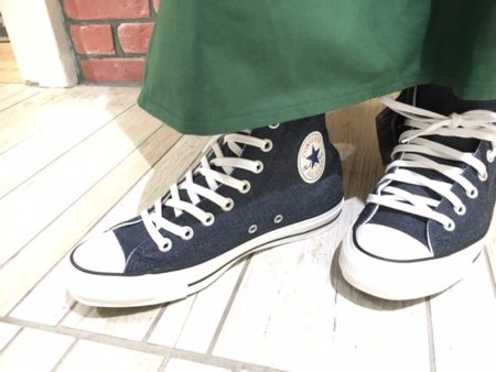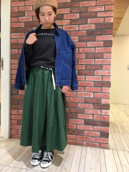 大人気アイテムを使用したコーディネート♫ 大人気ボリュームスカート秋スタイル(*^_^*) これからの季節もまだまだ使えます(^○^) ジャケットと合わせたり、トレーナーと合わせたりしても可愛いですよ♫ 残りわずかとなってきているので、気になられている方はお早めに** そして!コンバースより岡山デニムを使用したのハイカットシューズが入荷しています(*^_^*) 合わせやすさ抜群のアイテムです☆★ 少量入荷なので気になる方は是非チェックしにお店に遊びにいらしてくださいね♪♫ ご来店お待ちしております**