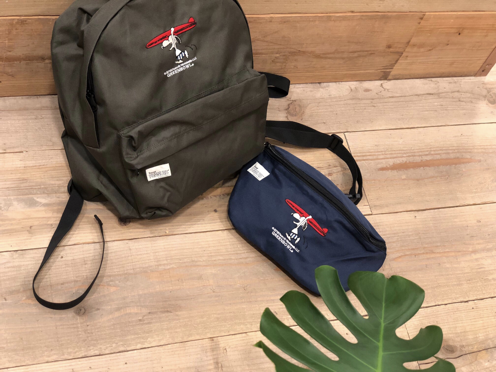 数量限定で入荷です* スヌーピーからおすすめのアイテムが入荷致しましたよ* 人気の刺繍シリーズからボディーバッグとリュックサックが登場致しました♪♪ 中央部分にサーフボードを持ったスヌーピーがデザインされており、刺繍なので子供っぽくならないのが嬉しいポイントですよ◎ そしてバッグ自体も軽くてコンパクトになるので持ち運びにもぴったりです!! カラーも使いやすいベーシックなカラーで4色展開となっております(^_^) ただ今、なんば店と天王寺店の2店舗で取り扱っており数が少ないアイテムなので要チェックしてくださいね☆