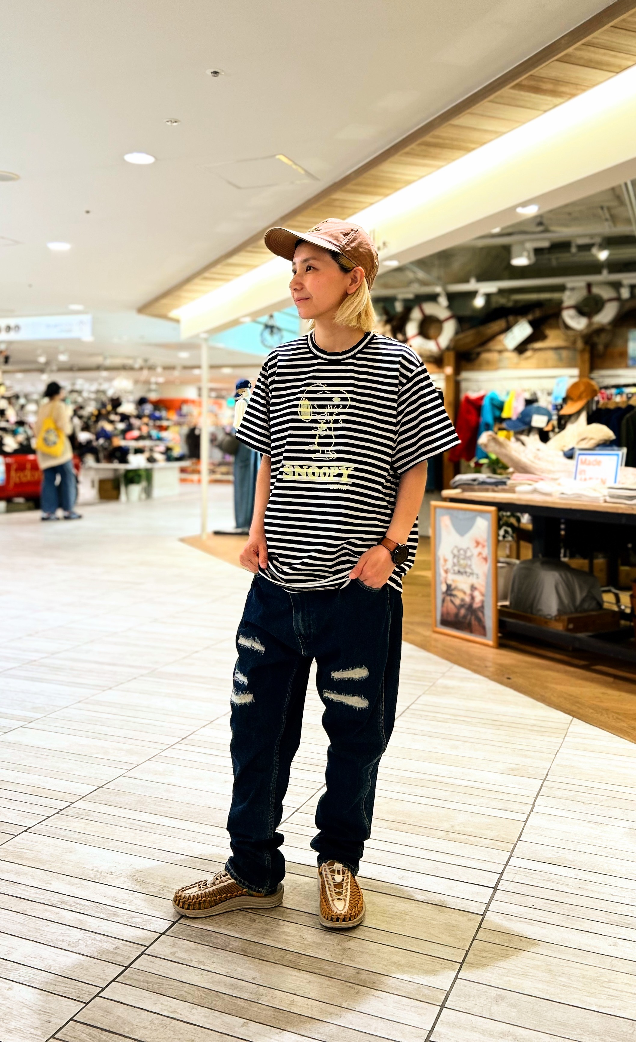 今回のTシャツはボーダー地にスヌーピーがプリントされているデザインです!