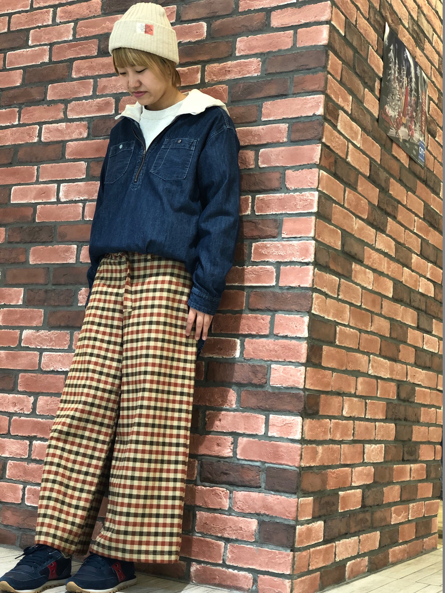 ハーフジップデニムシャツをアレンジして着てみました*