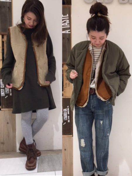 新作ボアベスト入荷★ グリーンボウルよりボアベストが 入荷致しました^^* ベージュとナッツの2色展開です♪♪ とっても軽いのですが 裏地がボアになっているので 暖かく着ていただけます( ^ω^ )* またカラーだったり合わせ方で 色々着回せちゃいますよ(^_^)! 明石店の小松さんは ベージュで女の子らしく、 なんば店の武井さんはナッツを インナーベストにして メンズライクなスタイリングに☆ どちらも可愛い♡ですね^^ 是非チェックしてみて下さいね**