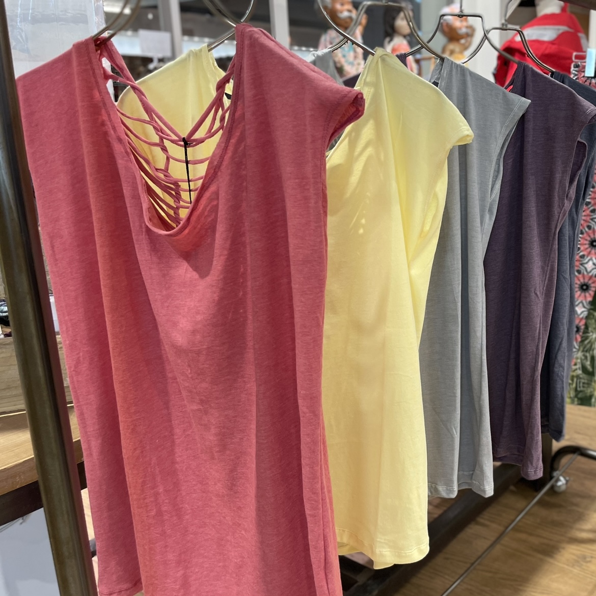 新作入荷しました★☆ 待っていました!! ビパッチトップス入荷しました(´∀`)b 柔らかく肌触りが良く、着心地GOOD☆ 衿ぐりのあきは、深めです!! 後ろ中心に網目のようにあき、インナーがチラリ☆アクセントになります( ´ー`)♪♪ 上下ビパッチで、ヨガコーデを楽しんでくださいね♪♪