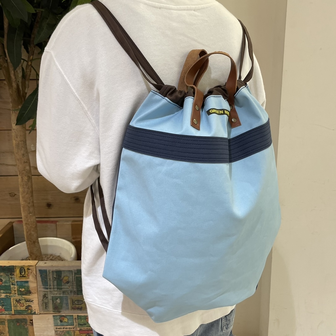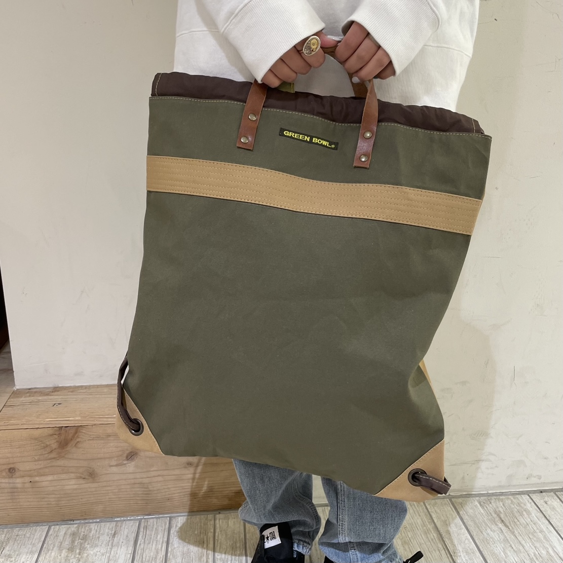 新作入荷しました!! GREEN BOWLの新作ナップサック入荷しました☆ 上の取っ手部分はレザーになってます♪ 色がとてもキレイですね* 色は2色展開です(*^_^*) ぜひチェックしてみてください!