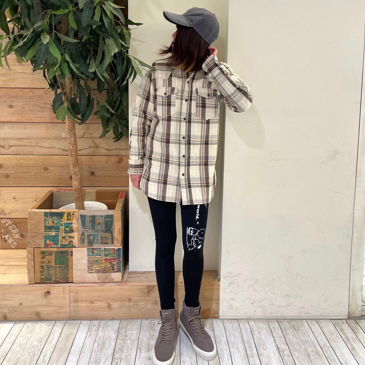 ロングシャツなので、レギンスとも合わせやすいです◎