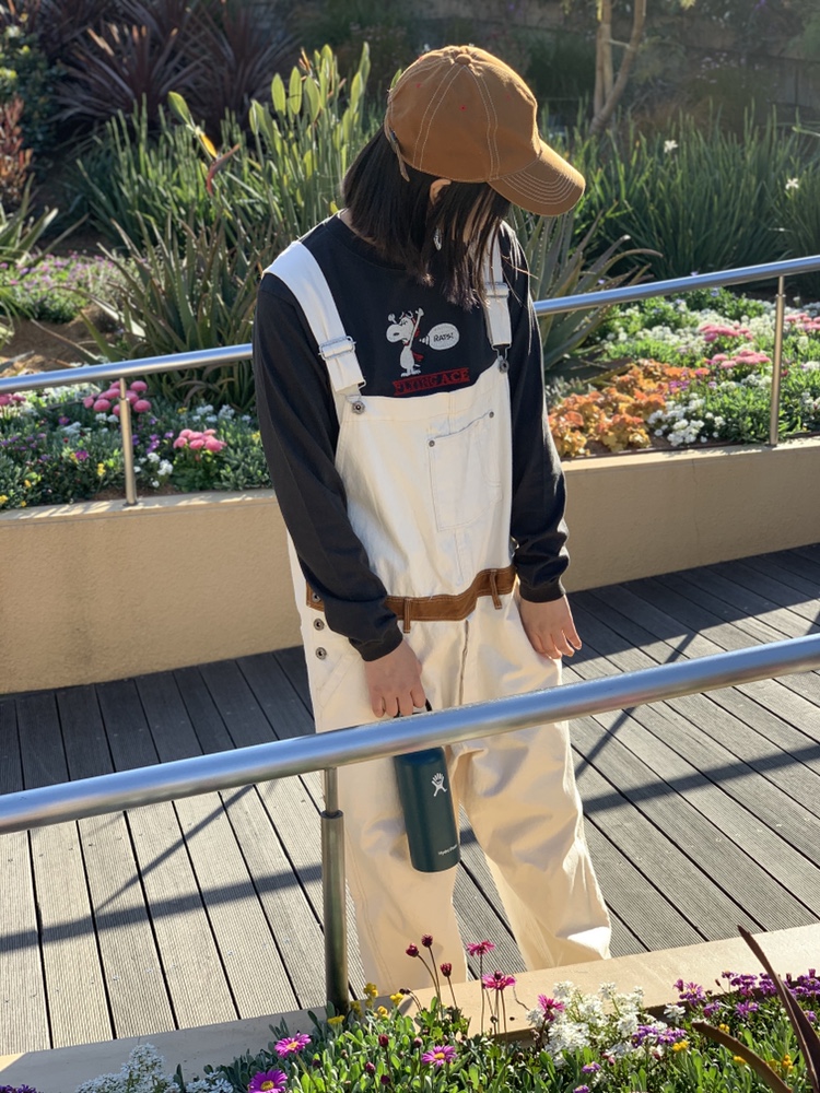 白いオーバーオールは春らしくてこれからちょうど着たくなります(*^_^*)