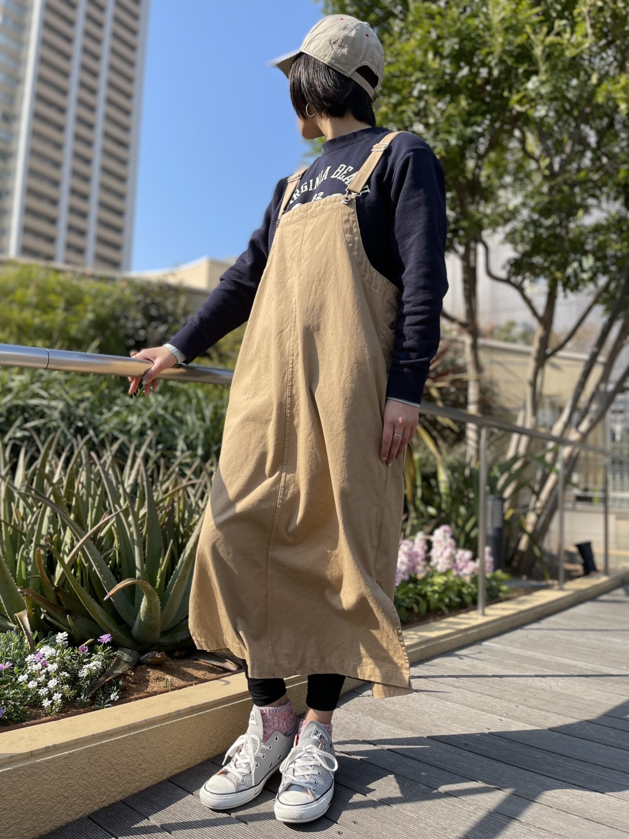 春のジャンパースカートコーディネート 昨日は暖かい一日でしたね! 春のジャンパースカートをスウェットと合わせ春らしくしました♪ スリットが入っているので色や、柄物を選ぶのも◉ 【GREEN BOWL】 Baseball Cap 【GREEN BOWL】 Print Sweat Shirts 【GREEN BOWL】Deck Overskirt