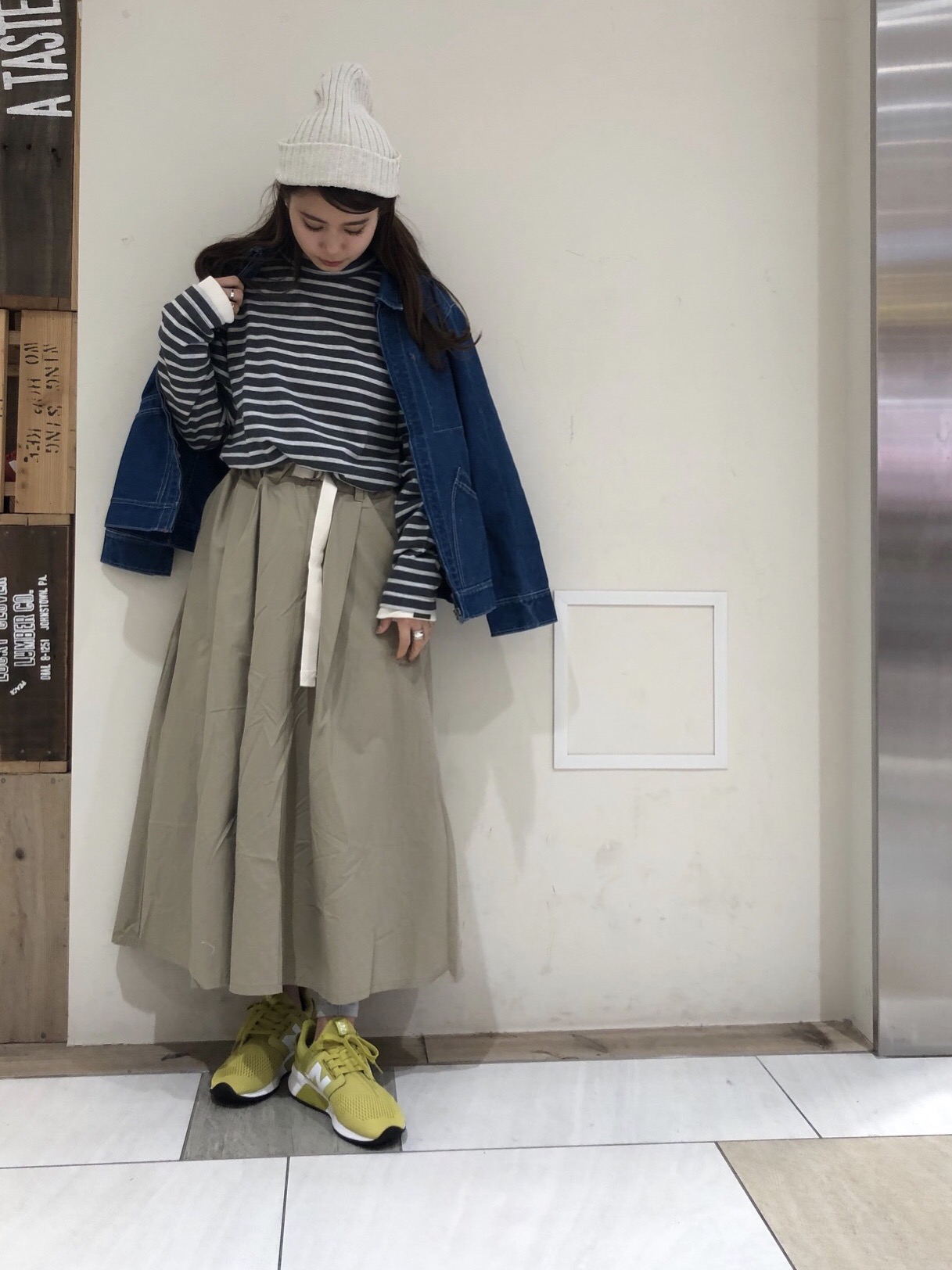 足元に色味を持ってくることで締りのあるコーディネートになっていますよ(^^)*