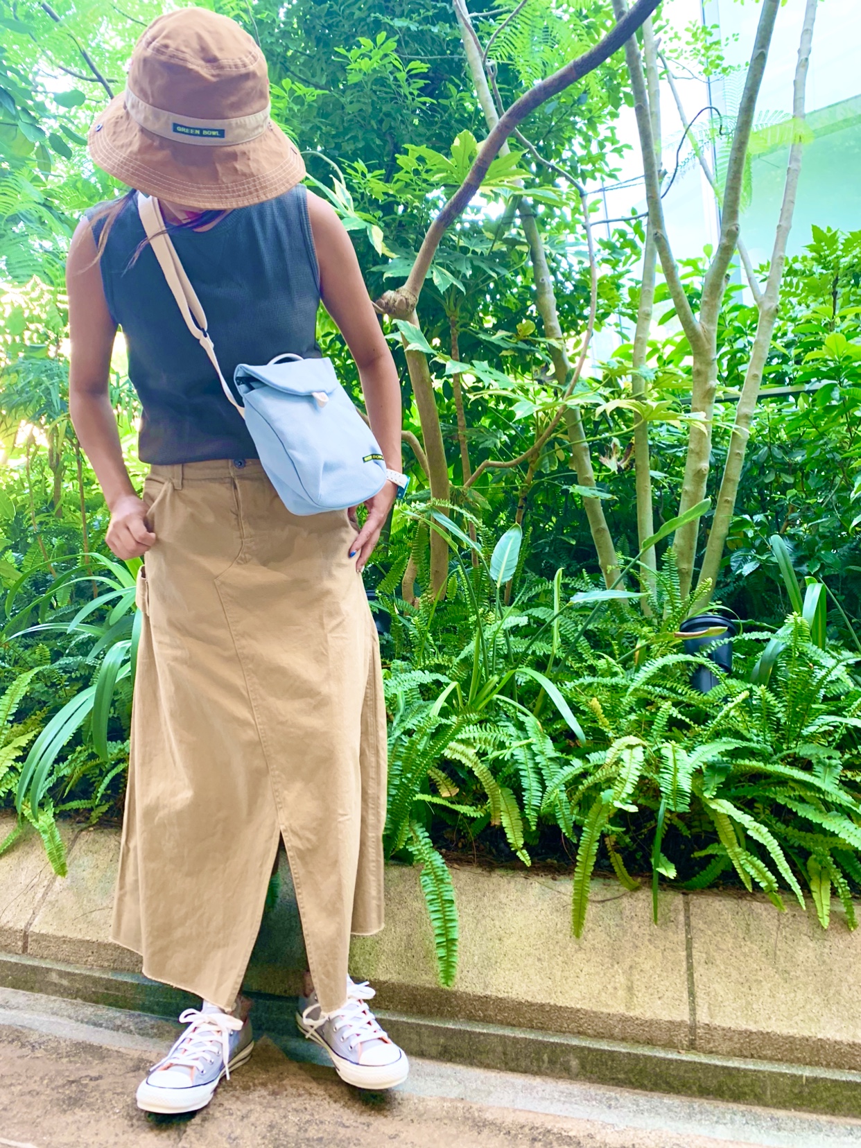 切れ込みのあるスカートと合わせたらまだまだ夏気分💫