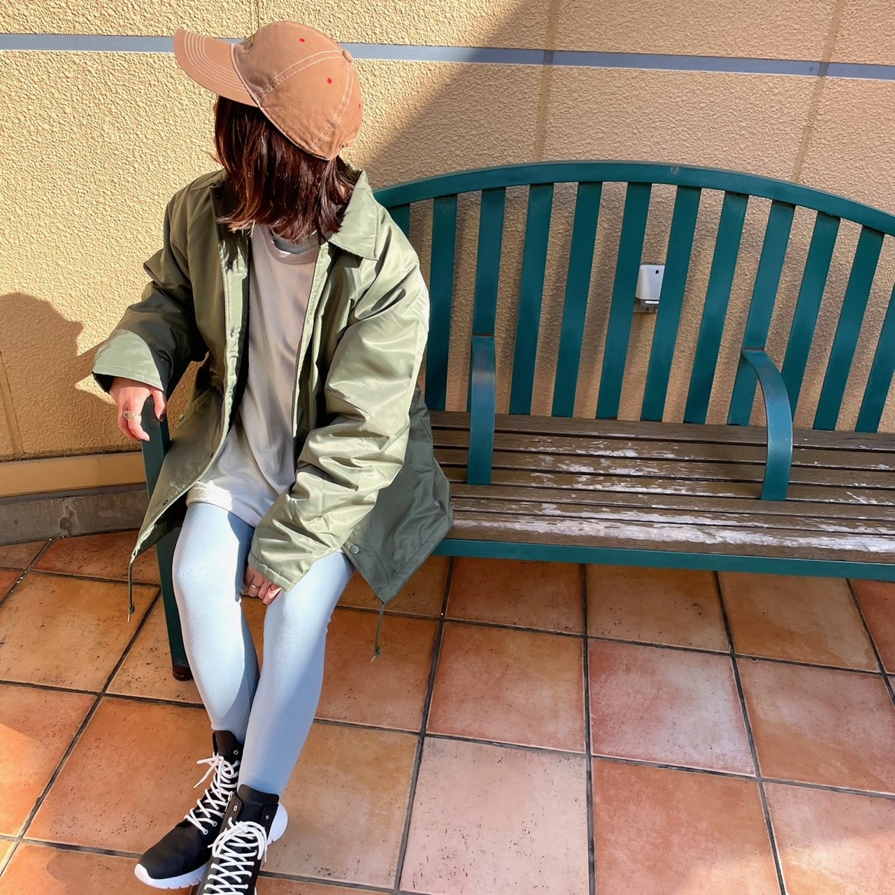 ジャケットとベースボールTシャツが、ゆったりなのでパギンスでコンパクトに!!