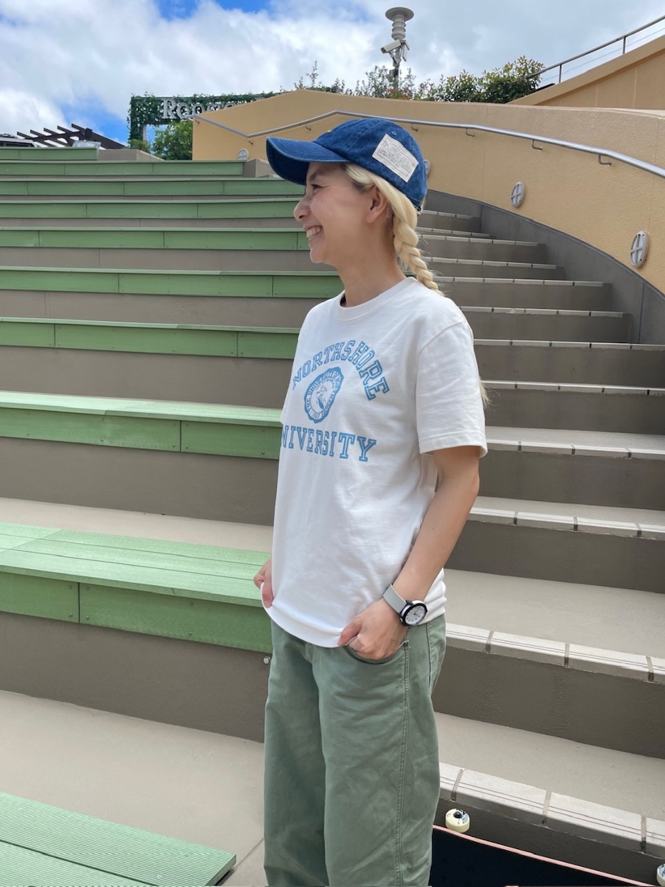 オーガニックコットンTシャツとカーキパンツで爽やかに組み合わせました!!