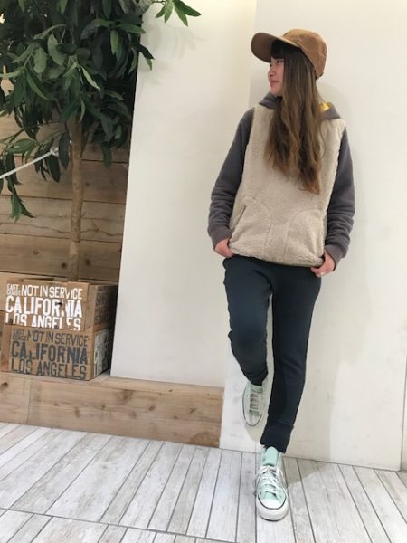 ②腰から上の切替が通常スカートやパンツのおしりに沿わせる為の位置にあるのでスウェットですが、立体的にヒップが上がって見えますよ☆ミ