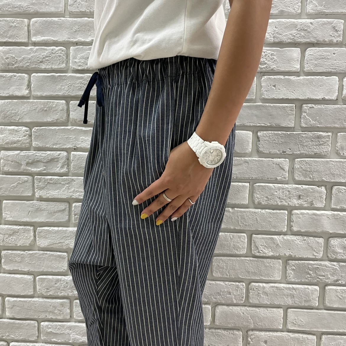 ウェストの仕様は、少し巾広のゴムとヒモなので、自由自在です